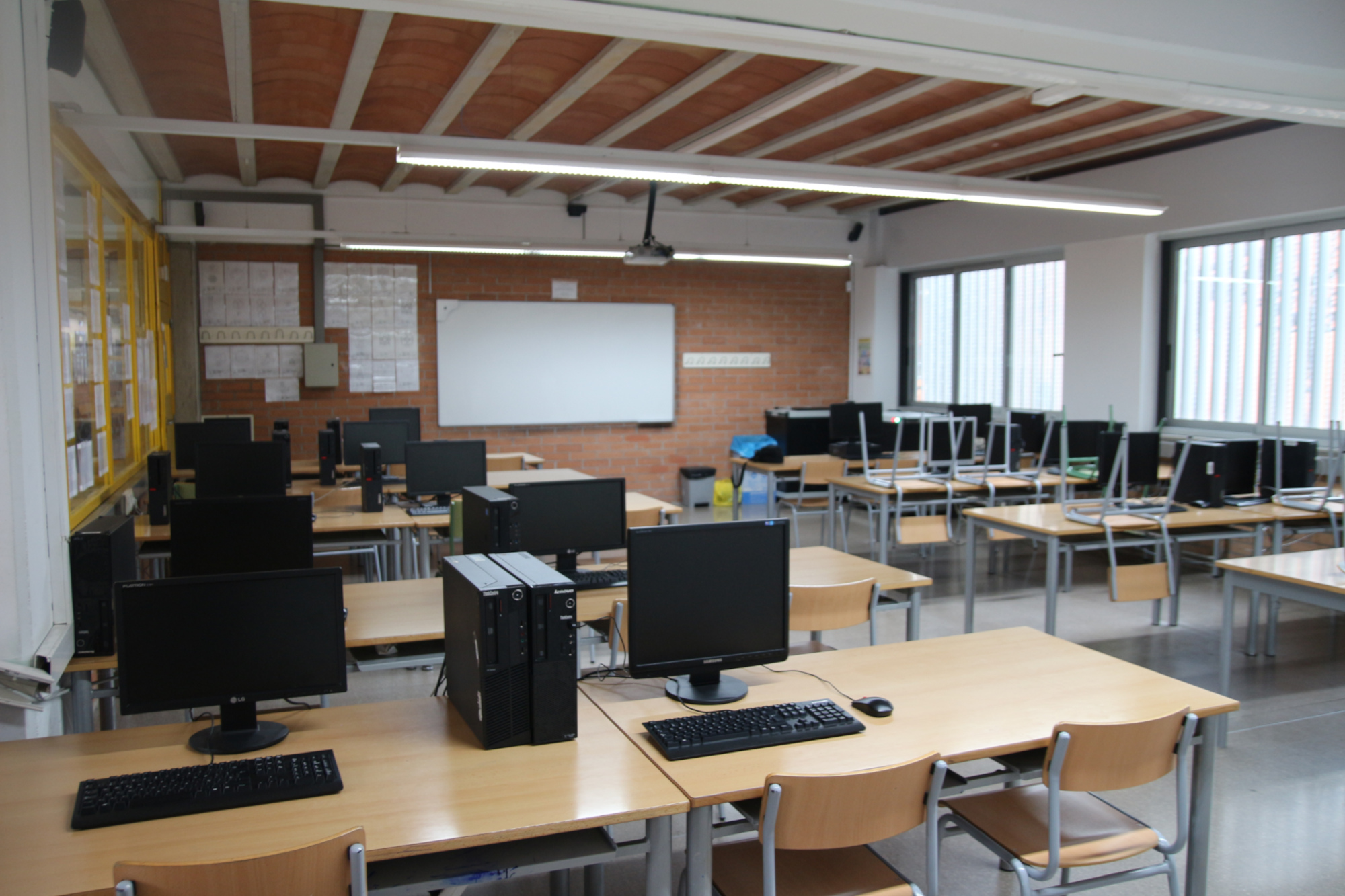 • Equipament docent: El lloc de treball del professorat està proveït d’un ordinador connectat a un projector, eines essencials per a les explicacions pautades, la demostració en temps real de procediments informàtics i la projecció de suports audiovisuals.