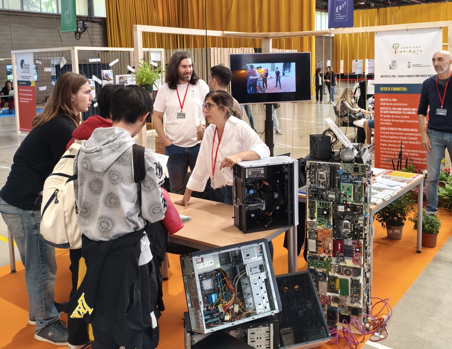 L’Institut El Foix va presentar un estand visiblement atractiu amb materials informatius, recursos visuals i demostracions pràctiques que van captar l’atenció dels visitants. L’equip docent, acompanyat d’alumnat del centre, va oferir orientació personalitzada a totes les persones interessades, resolent dubtes sobre requisits d’accés, continguts del cicle, sortides professionals i possibilitats de continuïtat acadèmica.