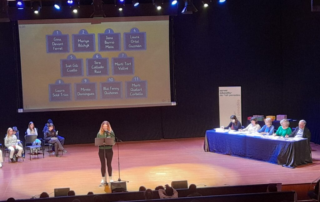 Aquest any el Certamen de Lectura en Veu Alta ha tornat a ser presencial, a l’auditori de Vilafranca, i, representant l’Institut el Foix, hi han participat la Douaa Argoub (2nC) i el Mustapha Ceesay (2nB) en la categoria de Timoners; la Mariya Bilchyk (2nD) i el Lleïr Farre (1rA) en la categoria de Corsaris, i el Sergi Coll (3rC), l’Elsa Rafecas (3rC), la Ivet Creixell (3rB), la Diana Onopriychuk (3rA), la Laia Ortega (3rA) i la Lídia Locubiche (3rC) en la categoria Tropa de Corsaris. Tots els titulars van llegir molt bé davant un públic molt nombrós i els suplents els van animar en tot moment. Va ser un matí amb nervis, però emocionant i amb un gran nivell!