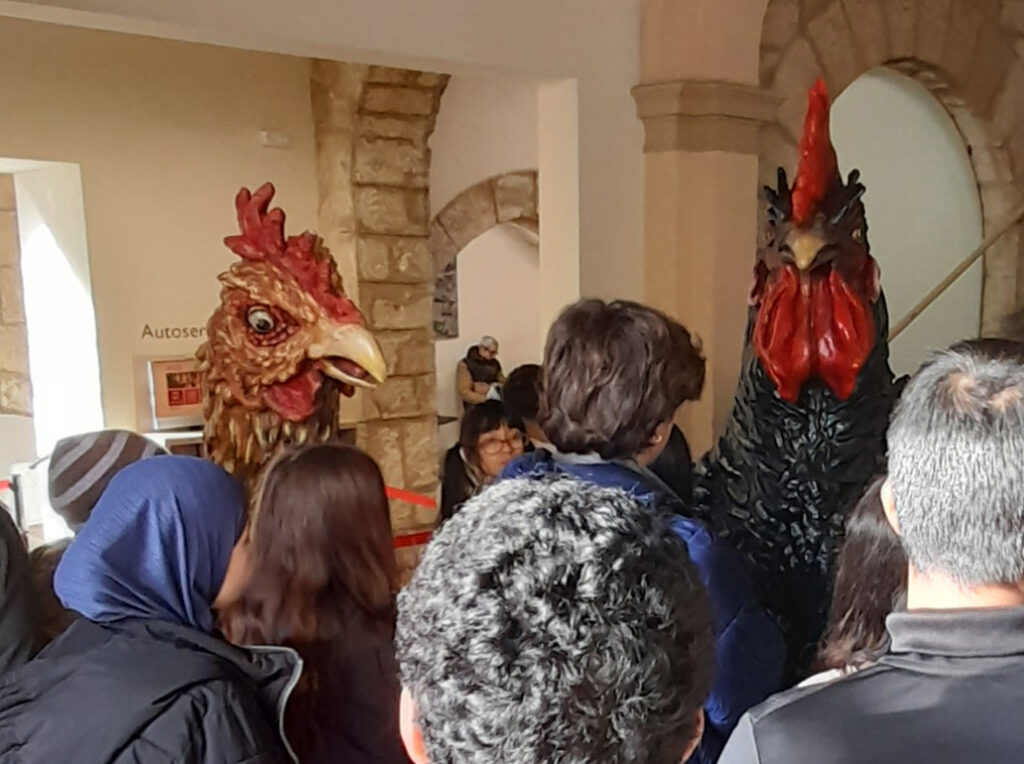 Tot seguit, el grup es va desplaçar fins a la Fira de Santa Llúcia de Vilafranca, on van participar en una petita gimcana que els va portar a descobrir diferents crestes de gall amagades entre les parades.