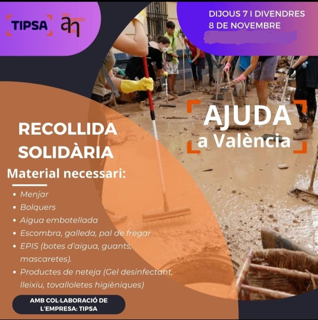 Tenim la possibilitat d’afegir-nos a una acció solidària per portar material necessari a la zona del País Valencià afectada per la DANA.