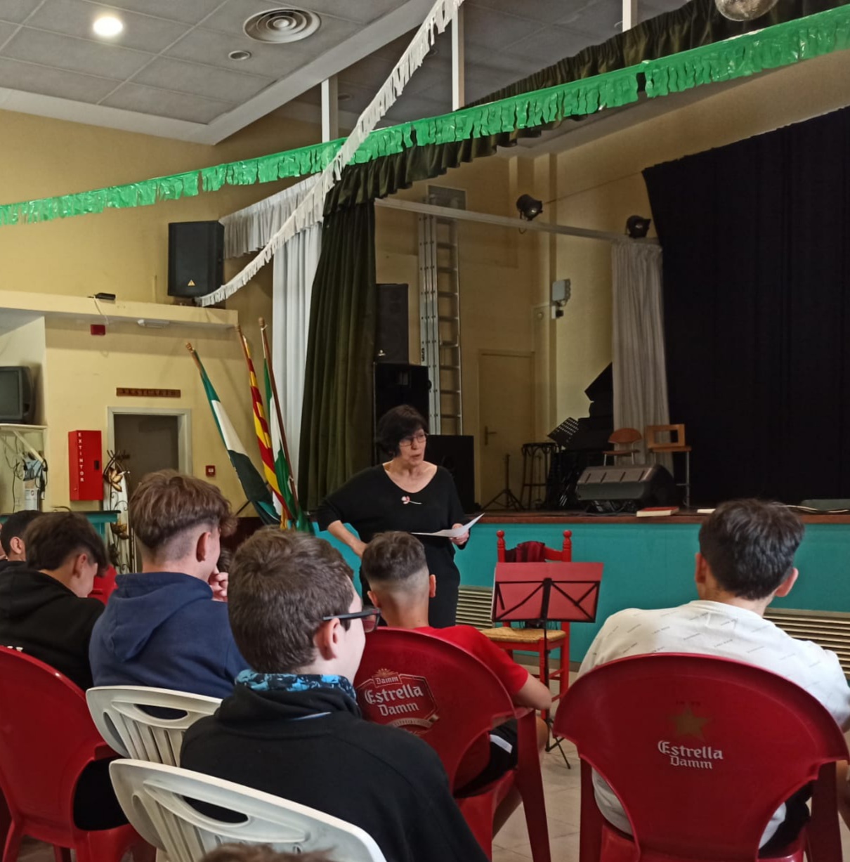 Aquest mes de maig els alumnes de 2n d’ESO han assistit a la darrera sessió dels tallers de narrativa oral organitzats en el marc del Festival En Veu Alta (EVA). Al llarg d’aquests mesos els alumnes han estat en contacte amb diverses formes de narrativa tradicional catalana, com són les rondalles i els contes (a càrrec de Carles Aloy i Jordina Biosca), les glosses (Carles Belda) i els romanços (Noemí Martínez). L’acollida dels tallers entre els alumnes ha estat molt bona i els ha permès conèixer de ben a prop la riquesa oral del català.