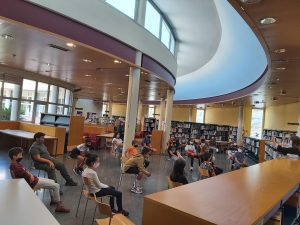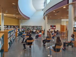 Al llarg d’aquest primer trimestre, l’alumnat de 1r d’ESO visita la biblioteca per tal de conèixer el funcionament de l’espai que passen a utilitzar a partir d’ara: l’espai d’adults.
