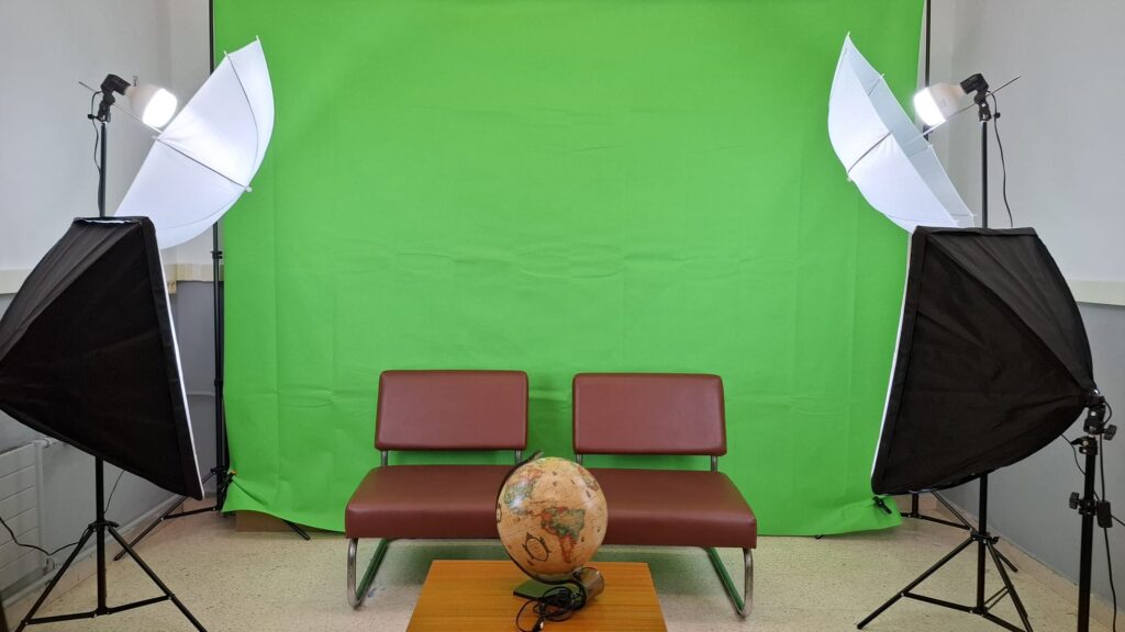 • Il·luminació: kit de croma amb teles de fons i un set de llums, a més d’un cercle de llum per a gravacions i fotografies.