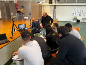 A les 9h del matí del 29 d’abril ja estava la feina grossa fet i ara només tocava esperar el resultat. Finalment, a les 10h es va saber que l’Institut El Palau havia passat a la final. El següent pas va ser fer la defensa en directe de la proposta de solució. La competició va pujar de nivell ja que es competia entre idees de reptes diferents. El Joan i el Rubén van fer una excel·lent defensa de la proposta, recolzats per la resta de l’equip, en Nil, en Jose, en Carlos i l’Emmanuel.