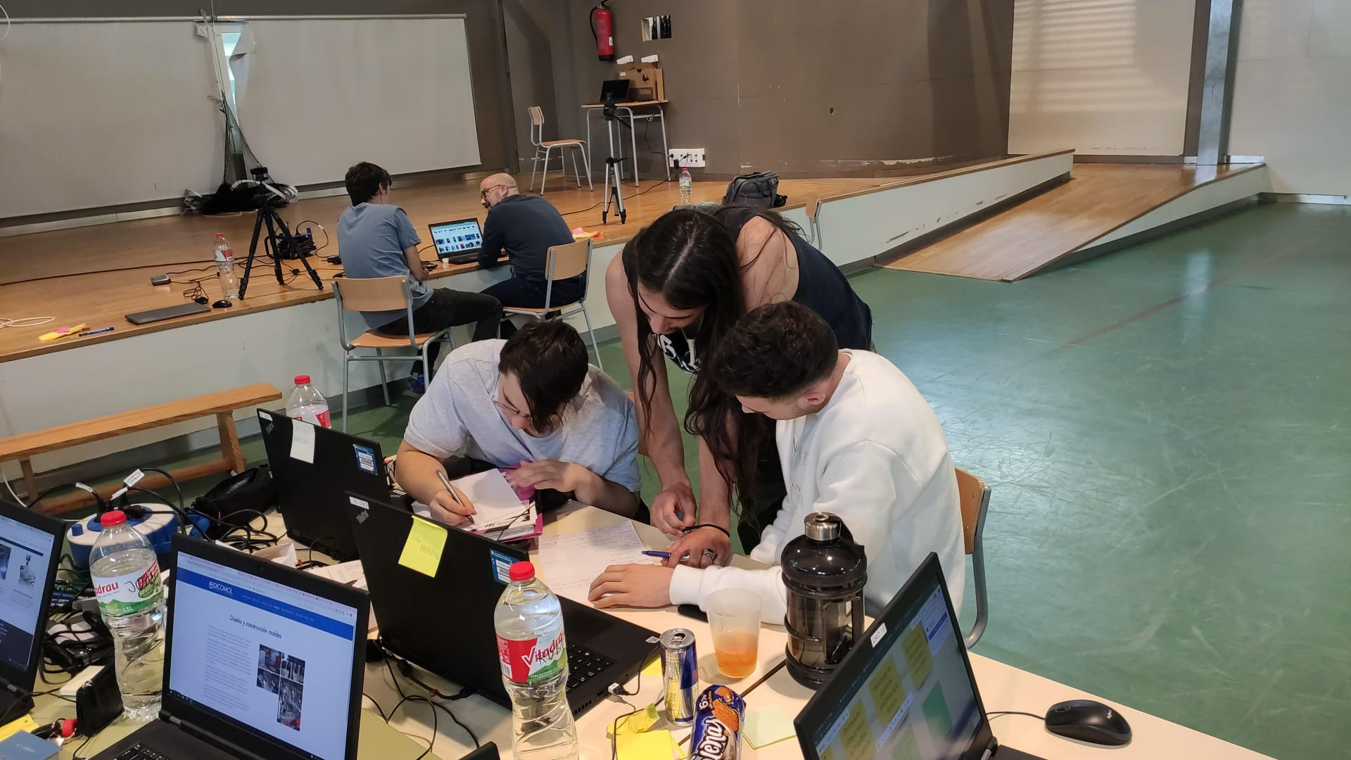 Per poder passar a la final, l’equip del Palau va treballar de valent tota la nit per tal de poder tenir una presentació i un vídeo de la defensa de la seva proposta de solució pel repte presentat per DICOMOL. En aquest repte hi havia dos centres més: l’institut de Mollet del Vallès i el CIFP Ciudad de León.