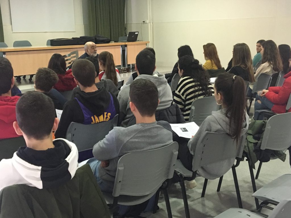 De nuevo este año nos ha visitado el cantautor Emiliano Valdeolivas. Durante la hora de tutoría de 1º de Bachillerato, Emiliano ha interpretado y recitado, acompañado de su guitarra, un repertorio de poemas escogidos de la literatura castellana de todos los tiempos.