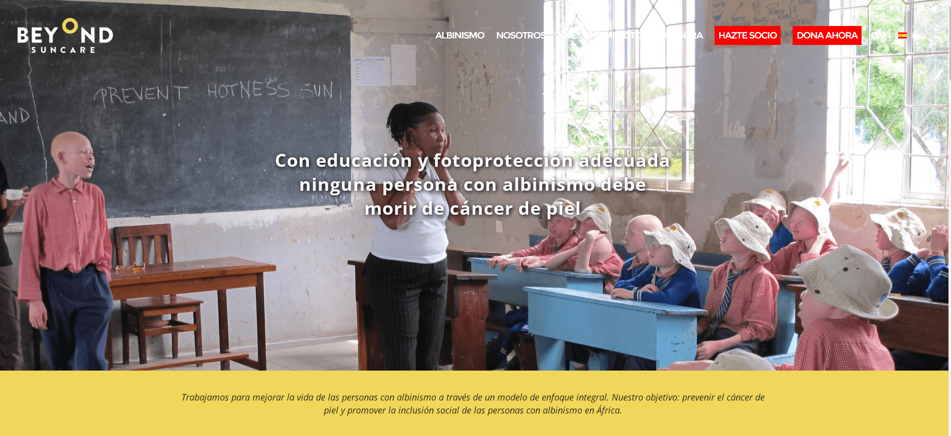 Beyond Suncare és una organització que lluita per un món en què es respecti els drets humans de totes les persones amb albinisme, on aquests gaudeixin de les mateixes oportunitats i visquin sense por una vida lliure, valent-se per si mateixes i sent qui realment són. I van més enllà de la protecció solar per assegurar que cap persona amb albinisme mori innecessàriament de càncer de pell.