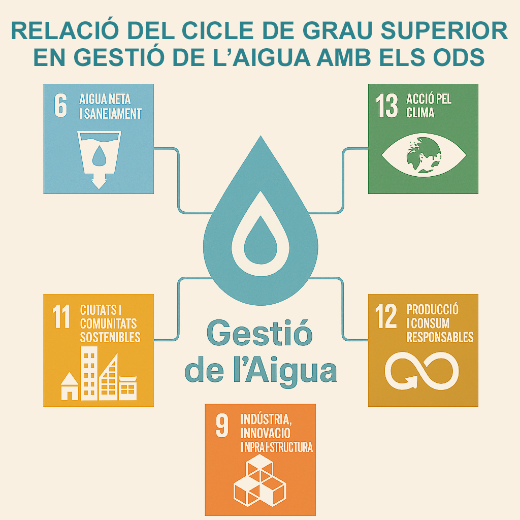 El cicle formatiu de grau superior en Gestió de l’Aigua es relaciona directament amb diversos Objectius de Desenvolupament Sostenible (ODS) de l’Agenda 2030 de les Nacions Unides.
