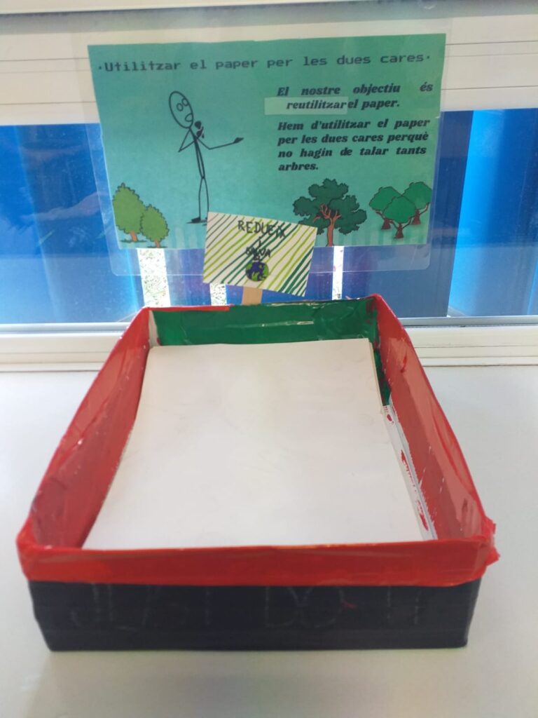 Participem en la 13a Setmana Europea de la Prevenció de Residus, que tindrà lloc del 20 al 28 de novembre. Els alumnes de l’aula verda de primer i segon d’ESO han confeccionat unes safates per a reutilitzar el paper a doble cara a les aules de l’ESO de l’institut.
