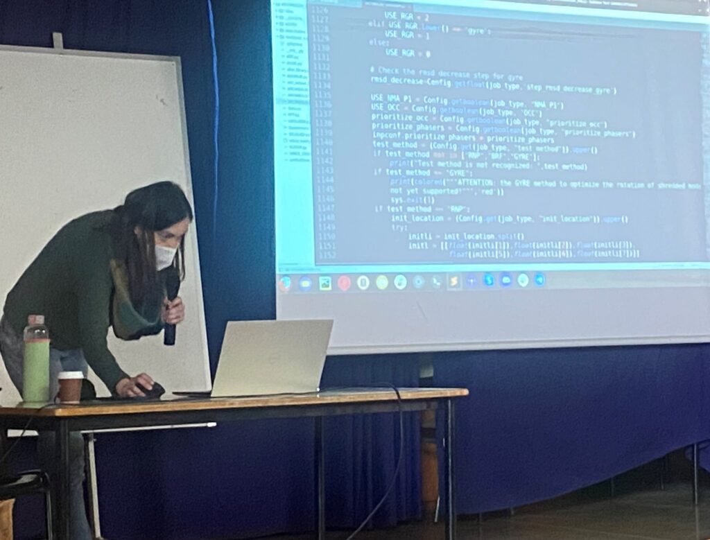 A les jornades d’orientació he explicat l’objectiu, metodologia i limitacions dels mètodes computacionals que despleguem al laboratori on treballo, mostrant quines eines fem servir per potenciar la programació col·laborativa entre tot l’equip, els recursos de què disposem (tant a nivell de hardware com de software) i com ens organitzem.