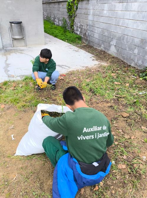 El PFI d’Auxiliar de Vivers i Jardins ha visitat avui l’Institut Bisbe Berenguer, a Santa Eulàlia, per col·laborar en el manteniment dels seus espais verds. Aquesta experiència, basada en l’Aprenentatge i Servei (APS), ha estat una gran oportunitat per posar en pràctica els coneixements adquirits i contribuir a la millora d’aquest entorn educatiu.