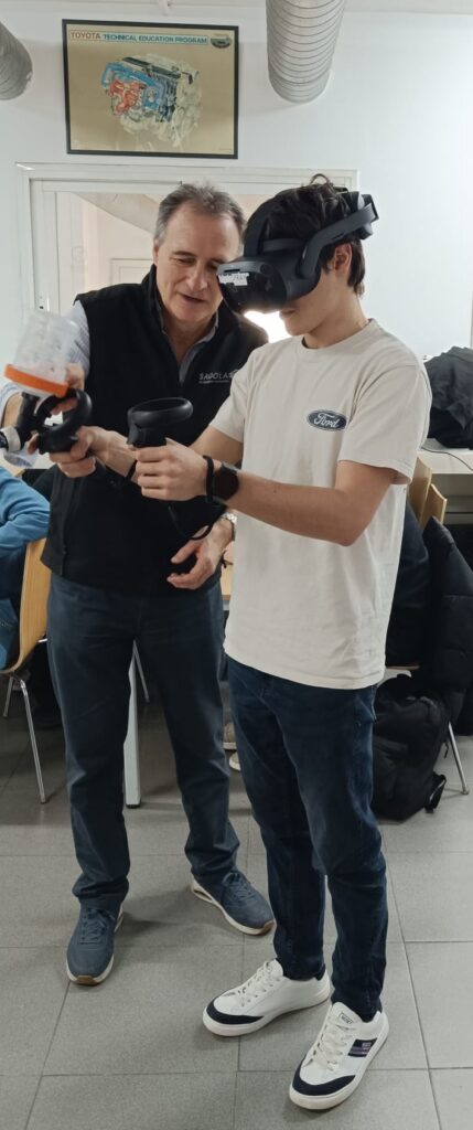 El moment més destacat de la sessió va ser la demostració de la Sagola Spray Virtual, una eina innovadora que permet als estudiants practicar la tècnica de pintat en un entorn de realitat simulada. Gràcies a aquesta tecnologia, els alumnes poden perfeccionar el moviment, la velocitat i la distància d’aplicació sense gastar material ni generar residus, accelerant així la seva corba d’aprenentatge abans de passar a la cabina real.