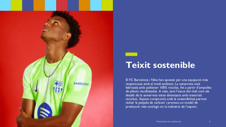Com a exemple tangible d’aquesta transformació cap a models de negoci més ètics i responsables, s’ha utilitzat la iniciativa del FC Barcelona amb la seva samarreta verda de la temporada 2024/25. A través d’un taller organitzat en col·laboració amb l’Associació per a la promoció de la sostenibilitat i la circularitat tèxtil (ASOSCAT), els estudiants han pogut: