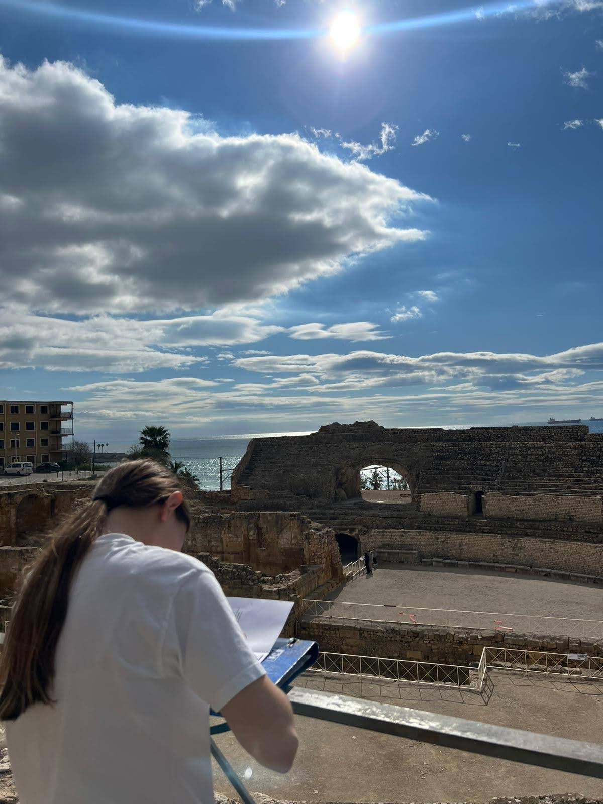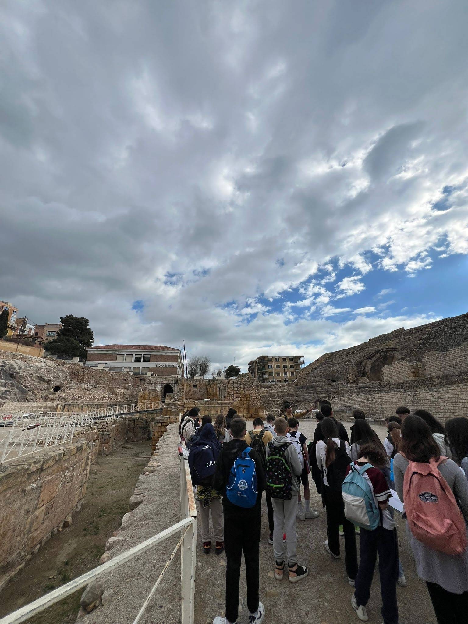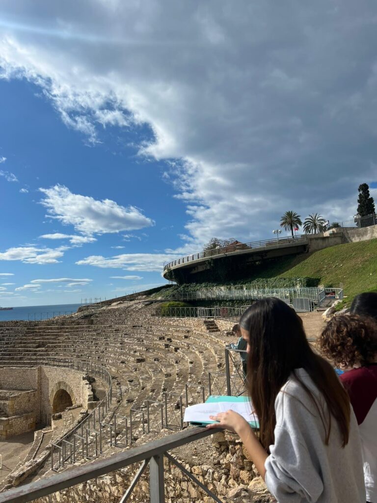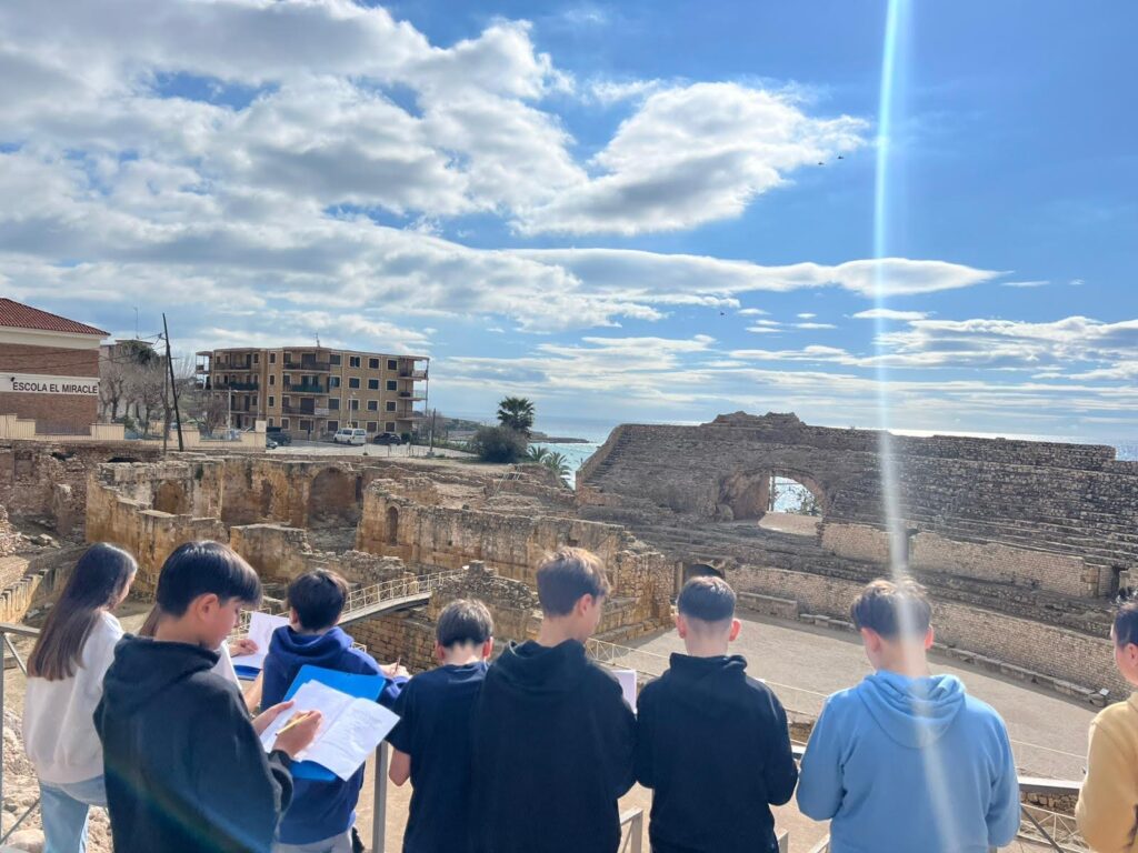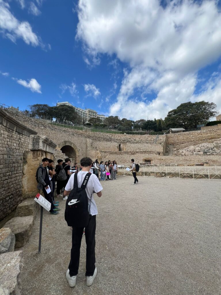 La primera parada va ser a l’amfiteatre romà, on van poder imaginar com era la vida a l’antiga Tarraco. L’explicació va ajudar-los a entendre la importància d’aquest espai en l’època romana i a visualitzar les lluites de gladiadors i els espectacles que hi tenien lloc. Els va sorprendre molt la grandiositat de l’espai i les vistes al mar, que van fer d’aquesta visita un moment especial.