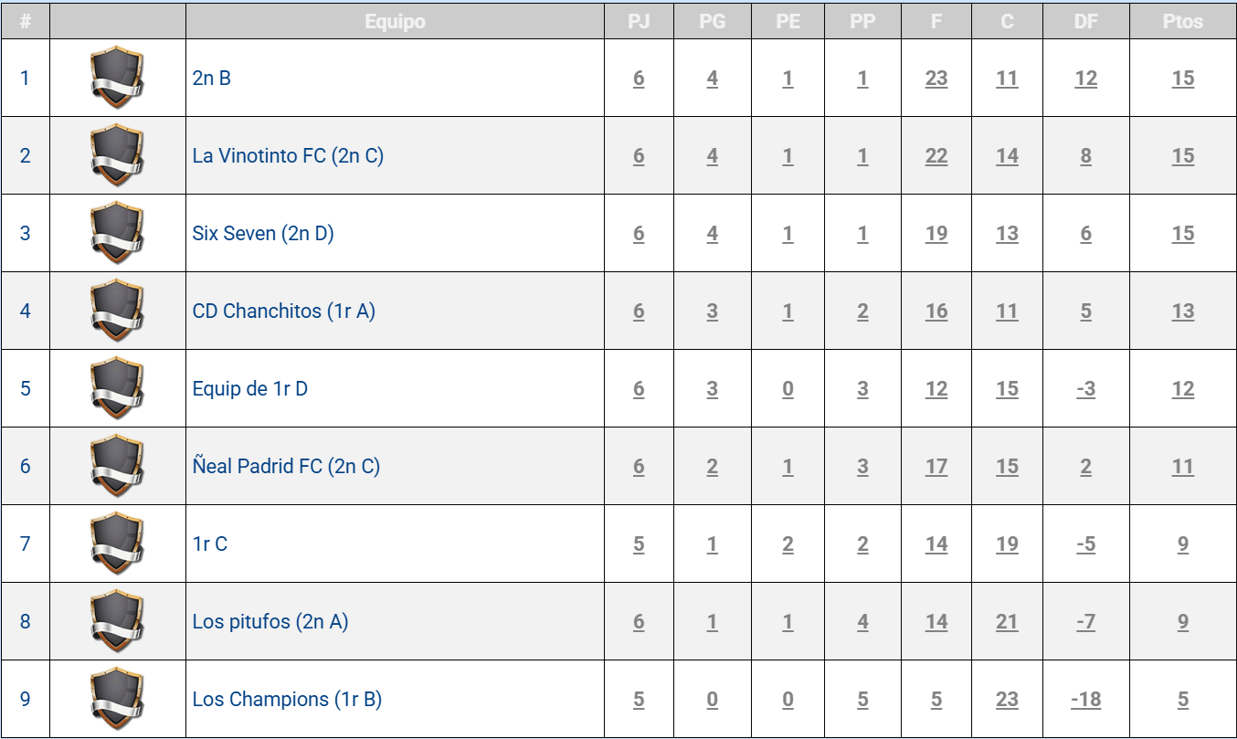 Pel que fa a la lliga de futbol sala de primer cicle d’ESO, hi ha hagut un canvi en les primeres posicions. Hi trobem un triple empat a punts entre els equips de 2n B, 2n C i 2n D, tots amb 4 partits guanyats, un empatat i un perdut. Podeu consultar la classificació completa a la següent imatge.