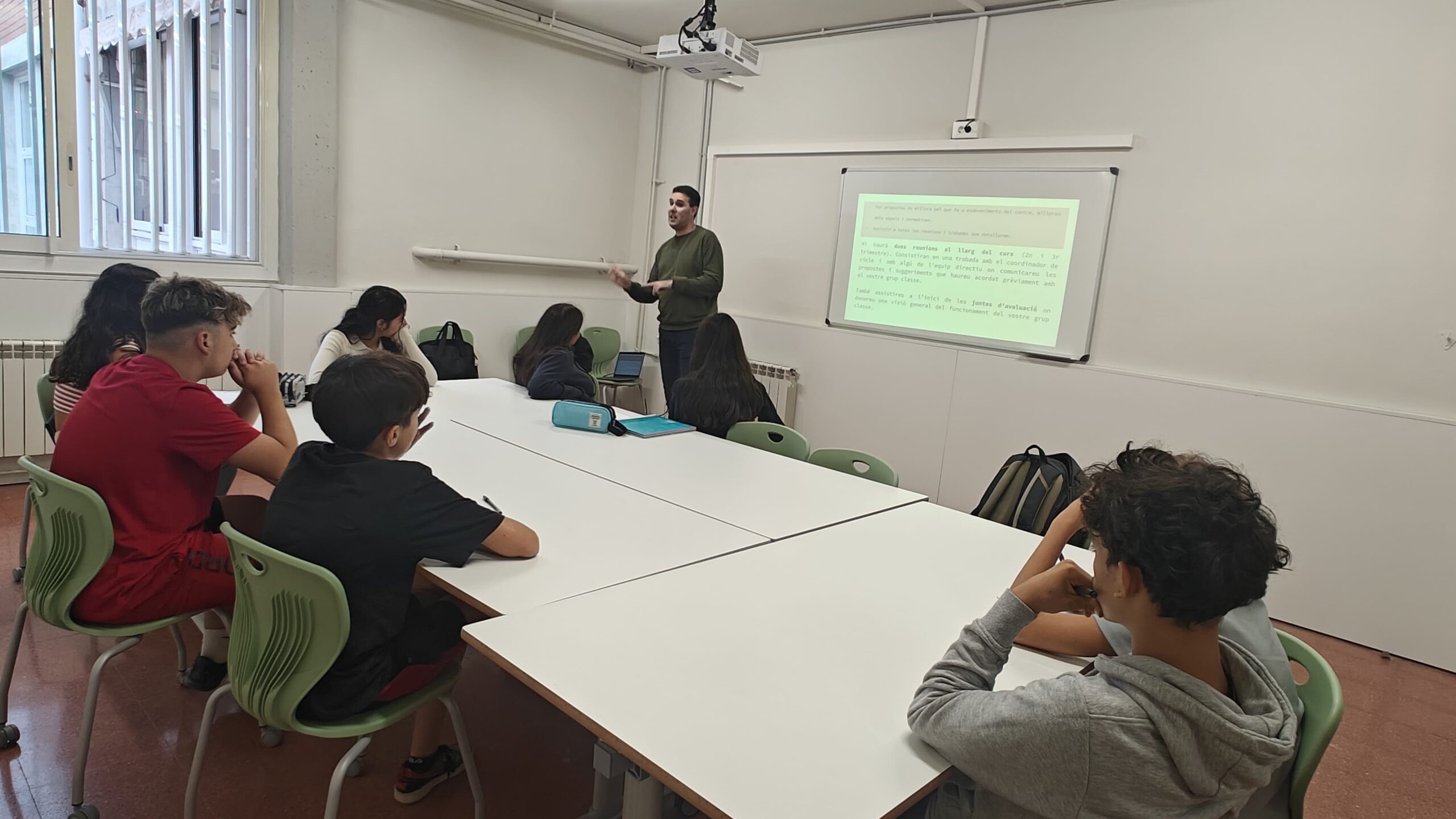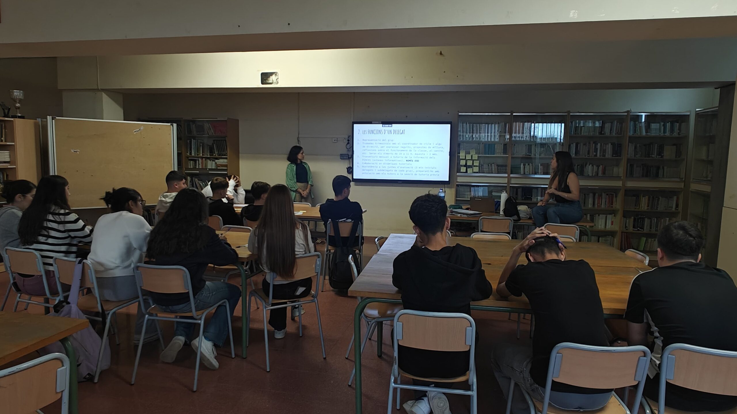 Durant la reunió, l’equip de coordinació va explicar el paper fonamental dels delegats com a enllaç entre l’alumnat i el professorat, destacant la importància de la seva tasca en la comunicació, la participació i la millora del clima escolar.