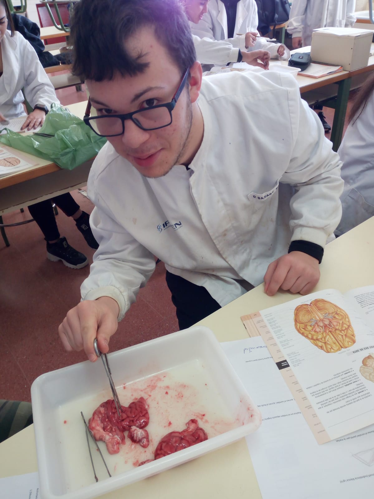 Ja som uns petits experts en disseccions, tot i que la textura de l’encèfal ens ha estat problemàtica, ja que alguns eren massa tous i ens ha costat reconèixer les diferents esctructures. Hem tolerat bastant bé la seva olor ja que no és tan forta com d’altres vísceres.