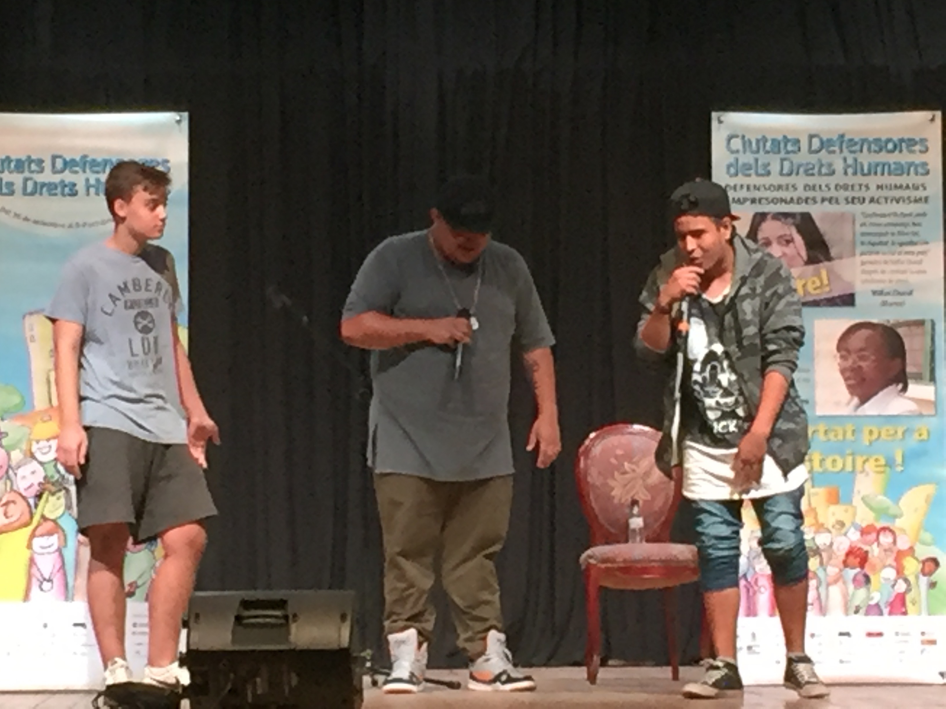 En Jeihhco va explicar als joves la força de la cultura i la música per aconseguir pau, convivència, cultura i progrés. Amb les seves explicacions sobre la seva experiència personal i el ritme del hip-hop se’ls va posar ràpidament a la butxaca i va aconseguir diversos aplaudiments espontanis per part dels nois i noies.