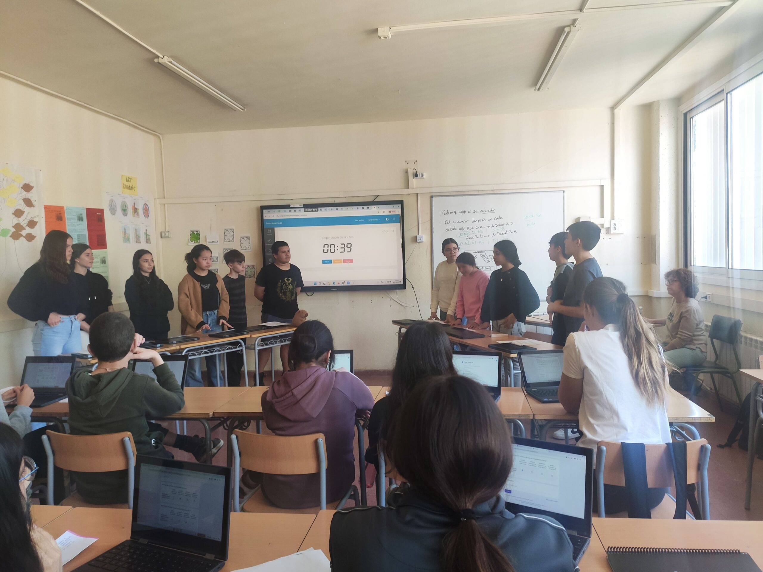 A classe, els alumnes han iniciat una fase d’exploració general dels ODS i, després, cada grup n’ha seleccionat un per investigar-lo a fons i preparar arguments sòlids sobre la seva rellevància. Posteriorment, s’han organitzat debats formals, en què cada equip ha defensat el seu ODS davant dels companys.