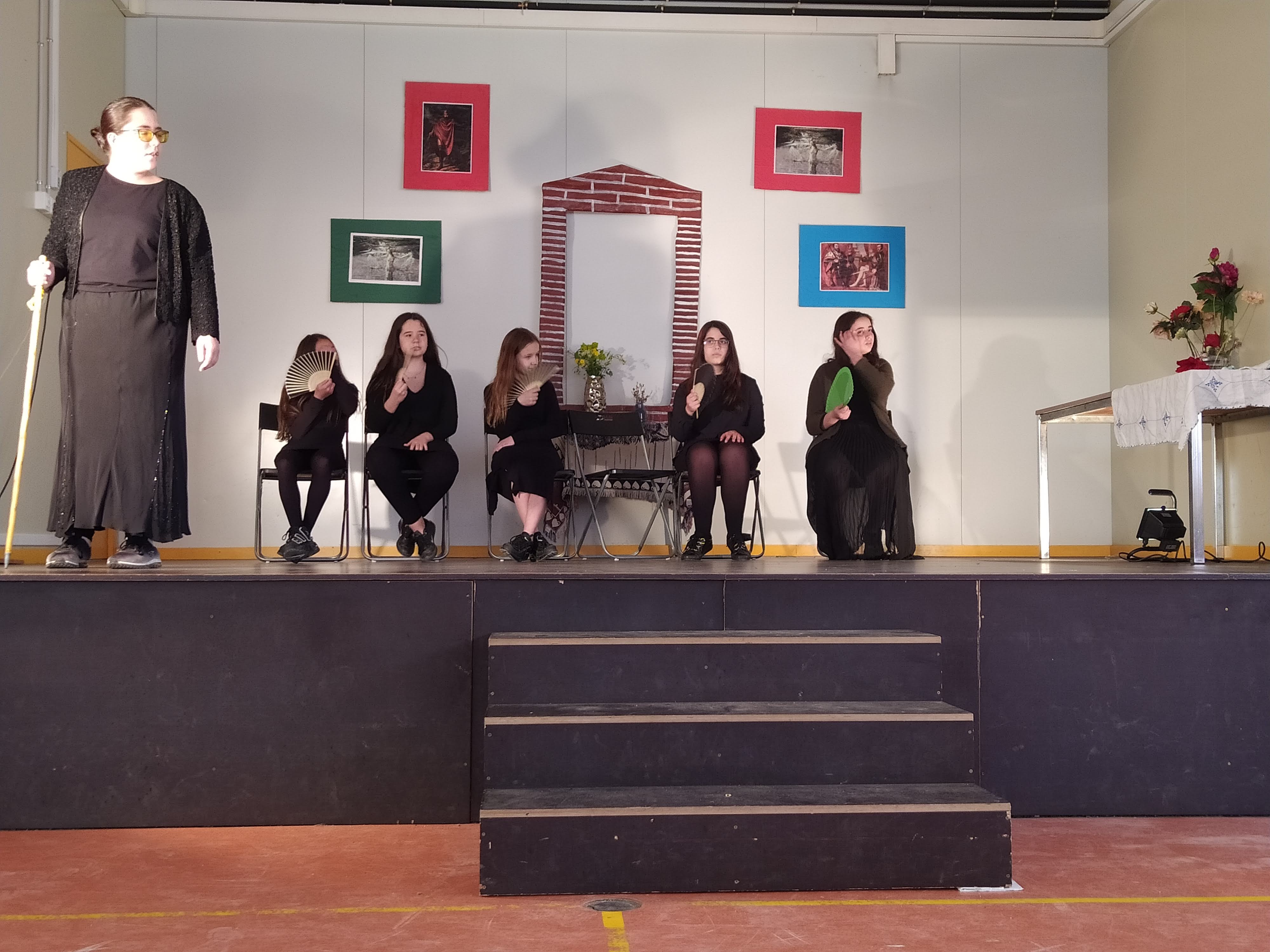 L’Institut Frederic Mompou va aixecar el teló el passat 23 d’abril dia de Sant Jordi. Així doncs, i per celebrar el dia del llibre, els i les alumnes de l’optativa de teatre de 2n de l’ESO van mostrar als seus companys el primer acte del text en què estem treballant des de principi de curs: “La casa de Bernarda Alba”, de Federico García Lorca.
