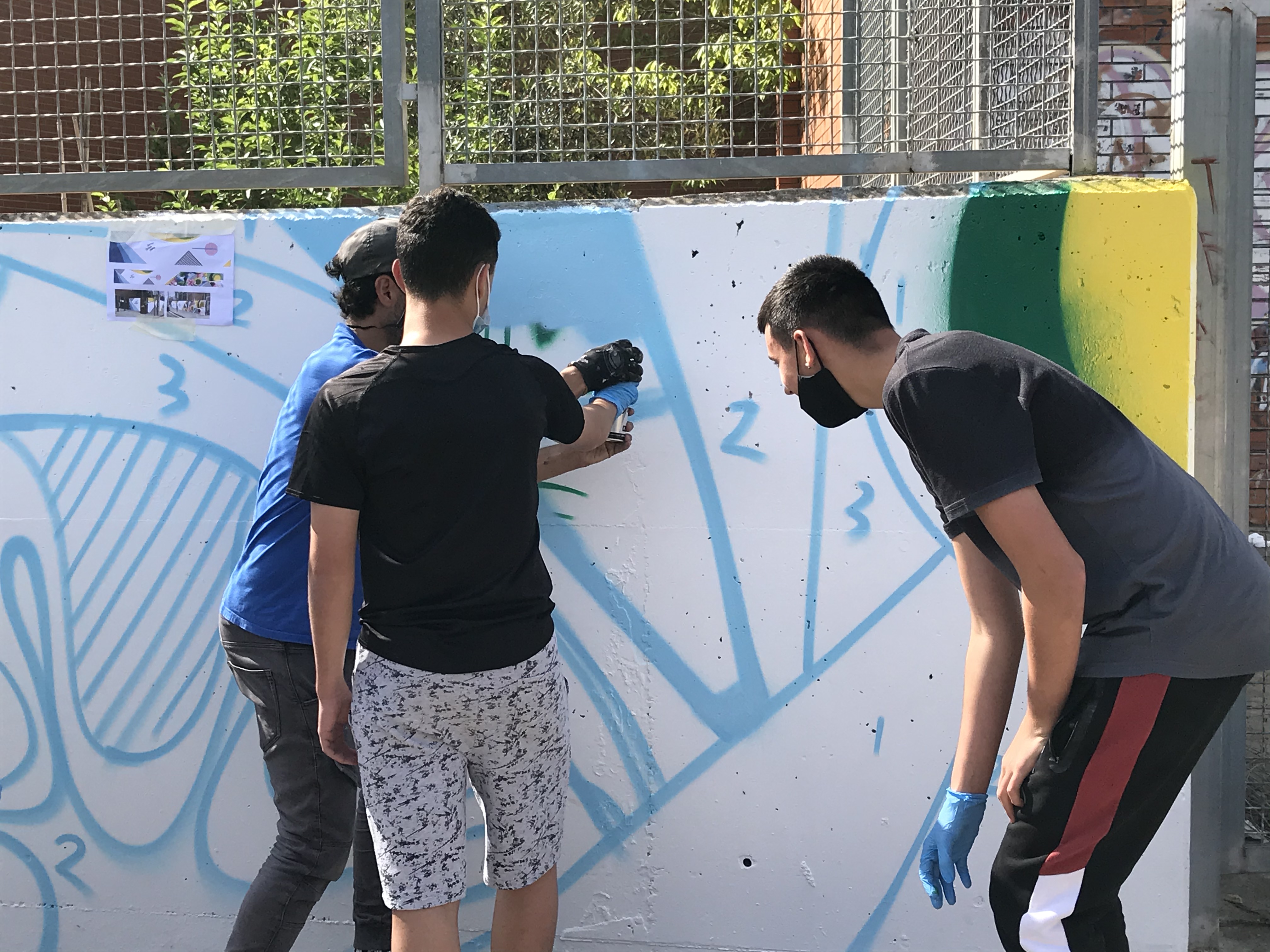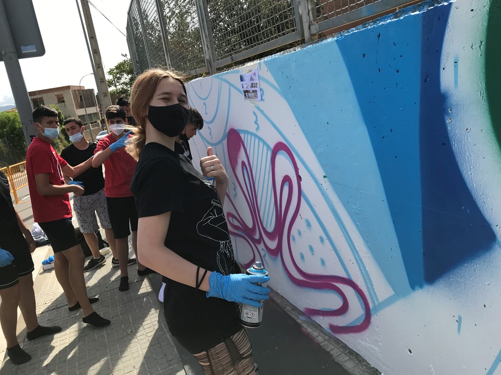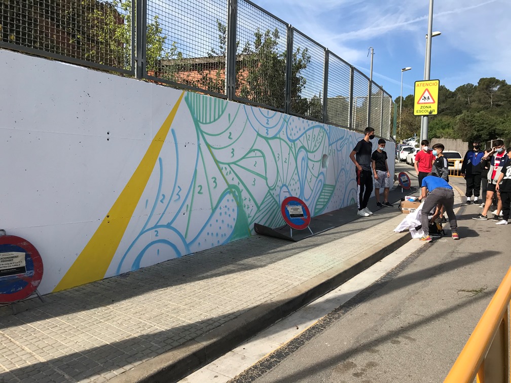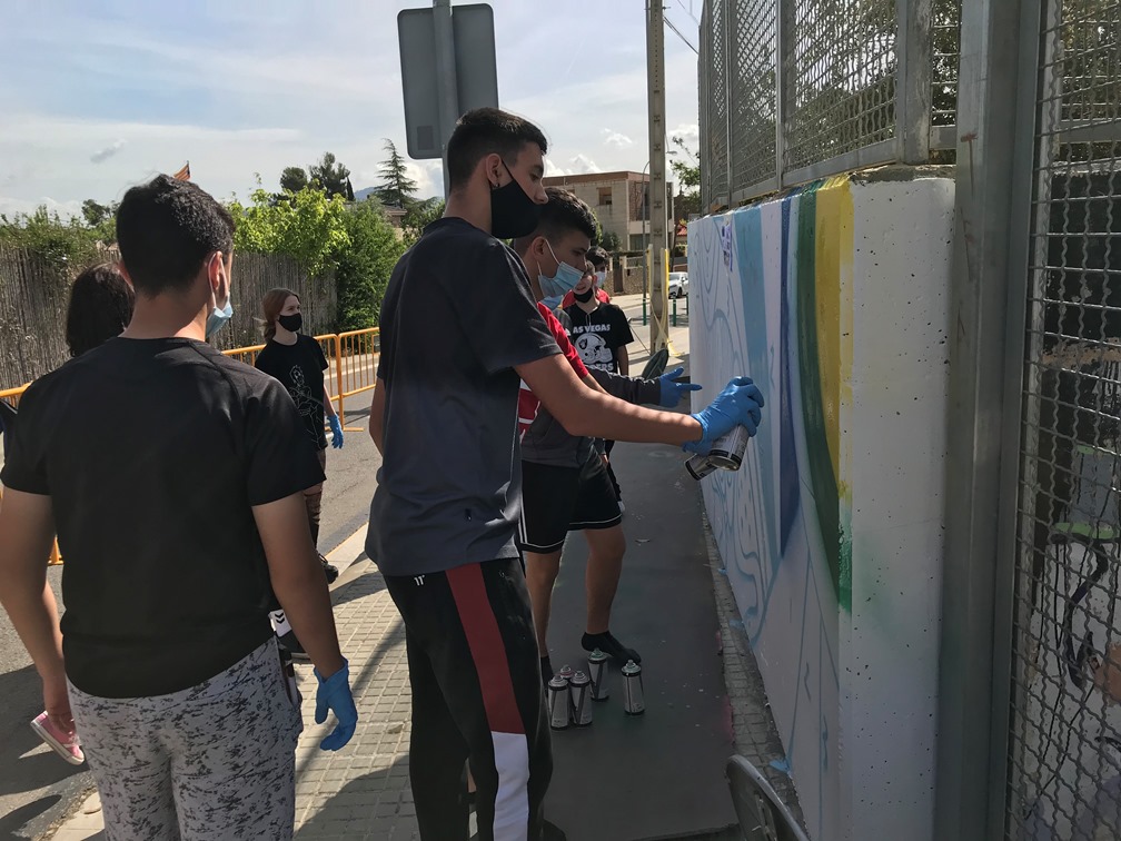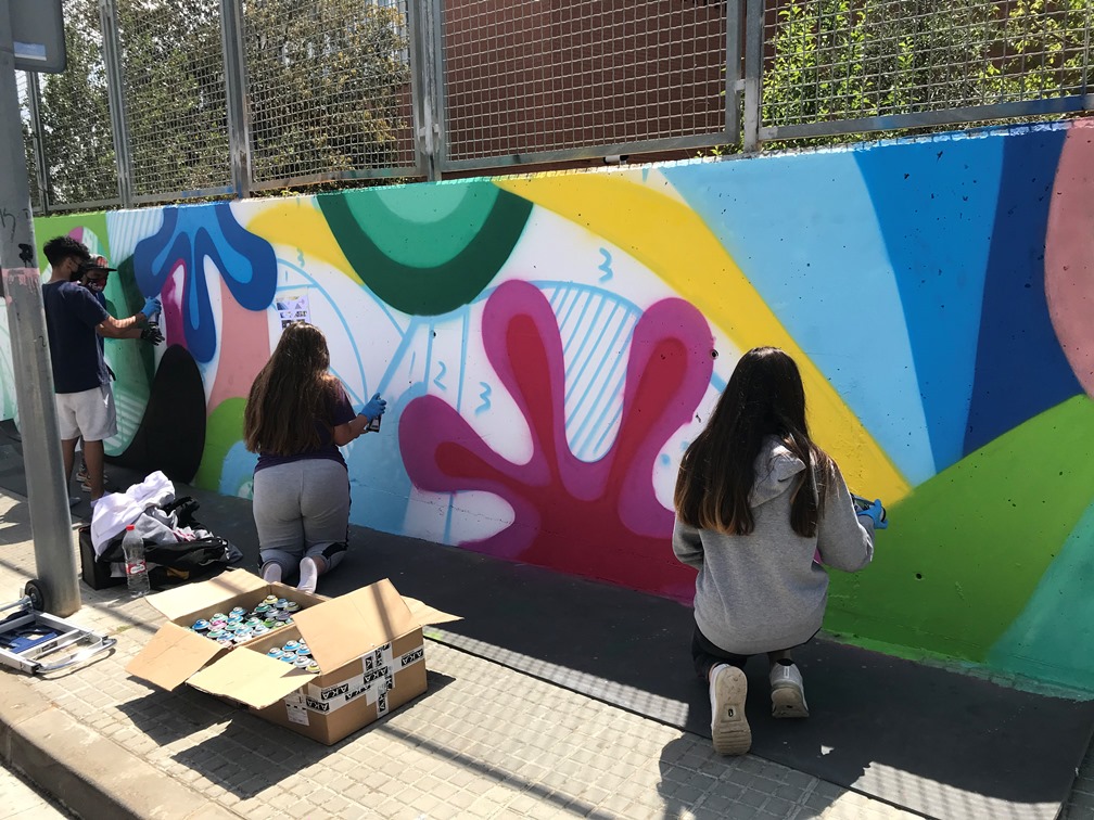 Els alumnes van fer una primera part de teoria per conèixer els orígens del graffiti, els seus valors i les seves tècniques. En la segona part del taller van sortir a l’exterior i van estar pintant el mur exterior del centre.