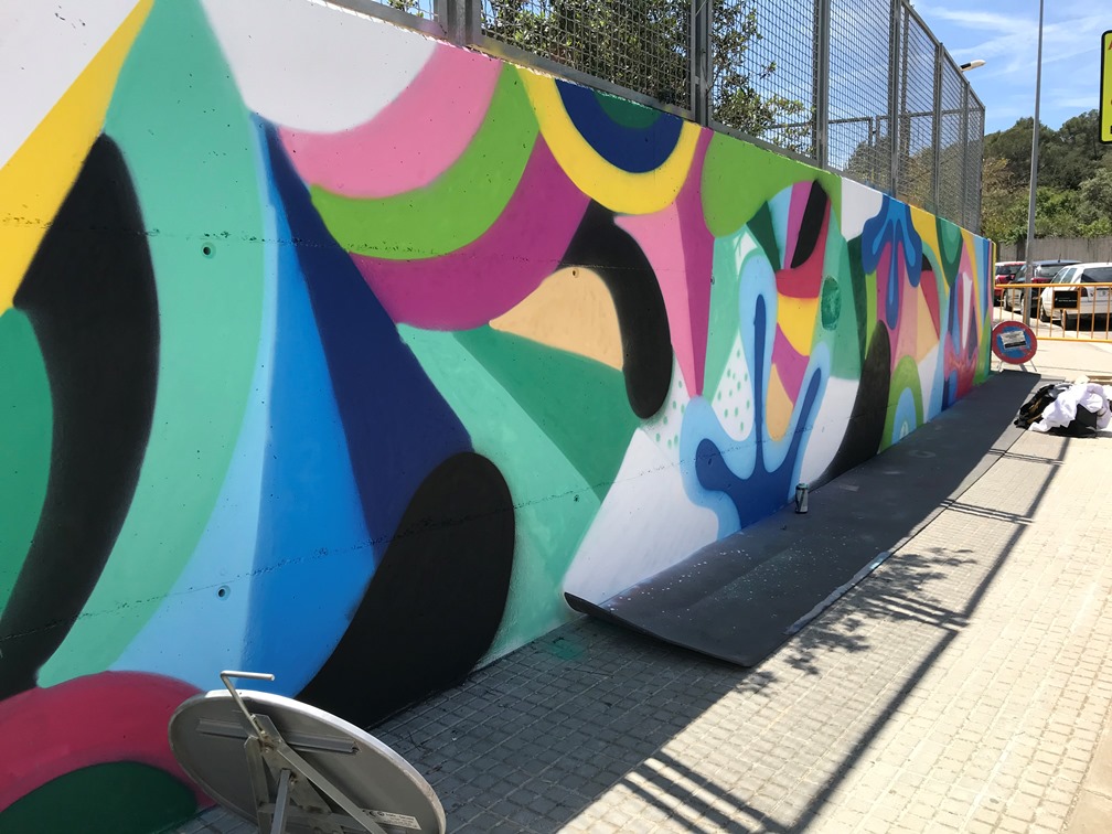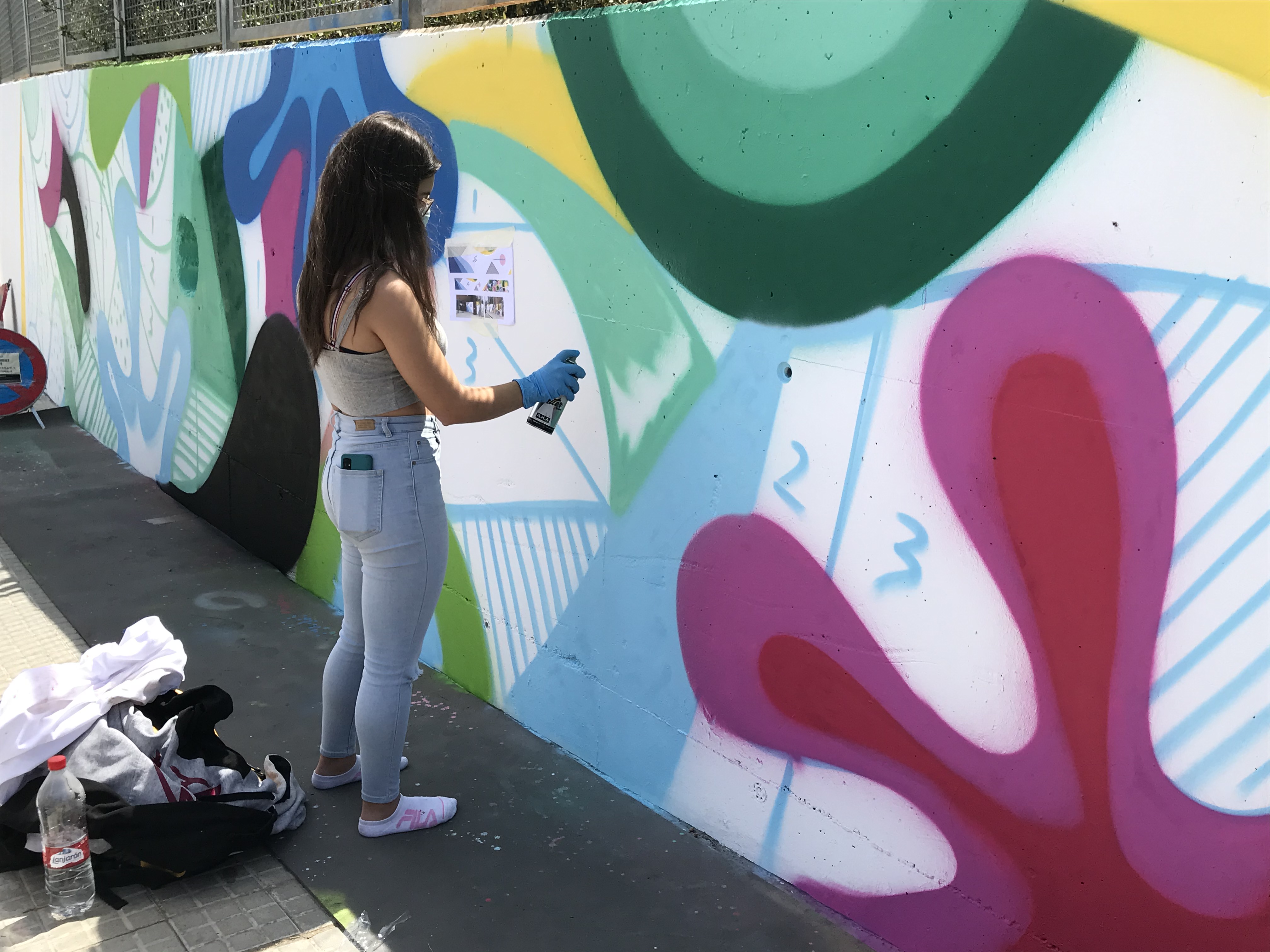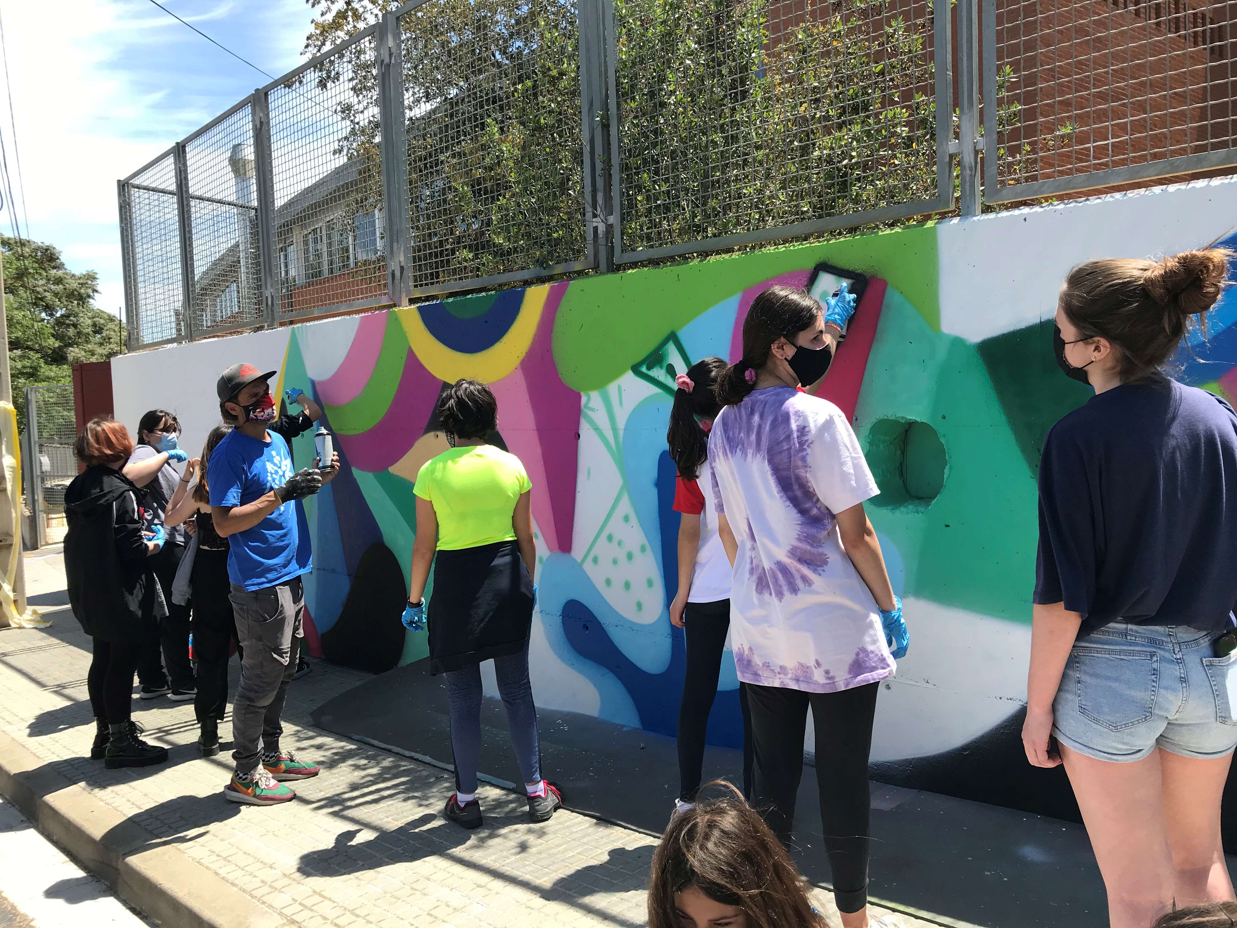 Els alumnes van fer una primera part de teoria per conèixer els orígens del graffiti, els seus valors i les seves tècniques. En la segona part del taller van sortir a l’exterior i van estar pintant el mur exterior del centre.