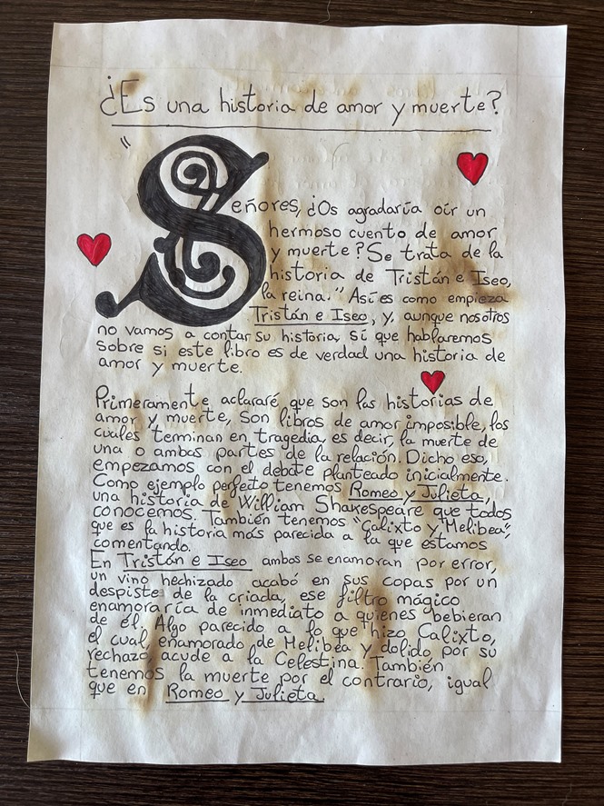 I el nostre grup de Literatura universal de 1r de Batxillerat ha fet la lectura comprensiva, l’anàlisi dels aspectes més rellevants de la història, així com les seves fonts i influències arreu del món. També han recreat episodis i símbols del romanç. Han treballat de manera individual i cooperativa per donar forma a aquesta exposició on podeu trobar el context històric, cultural i l’anàlisi i interpretació de l’obra a partir de diferents produccions escrites, plàstiques, fotogràfiques i audiovisuals.