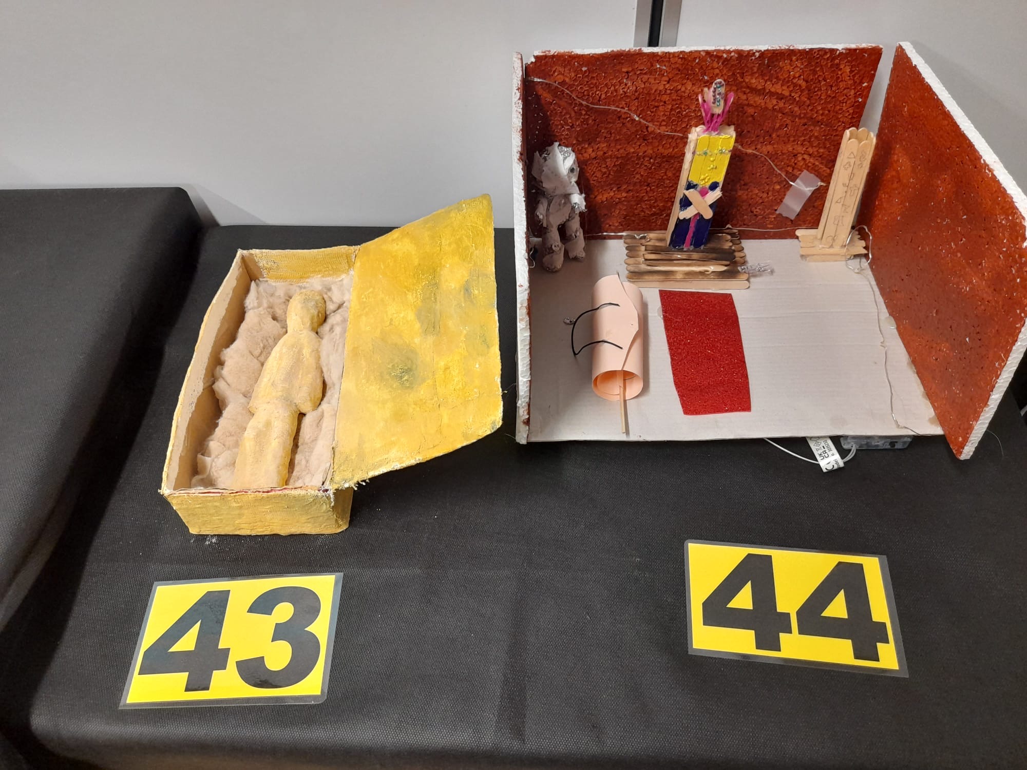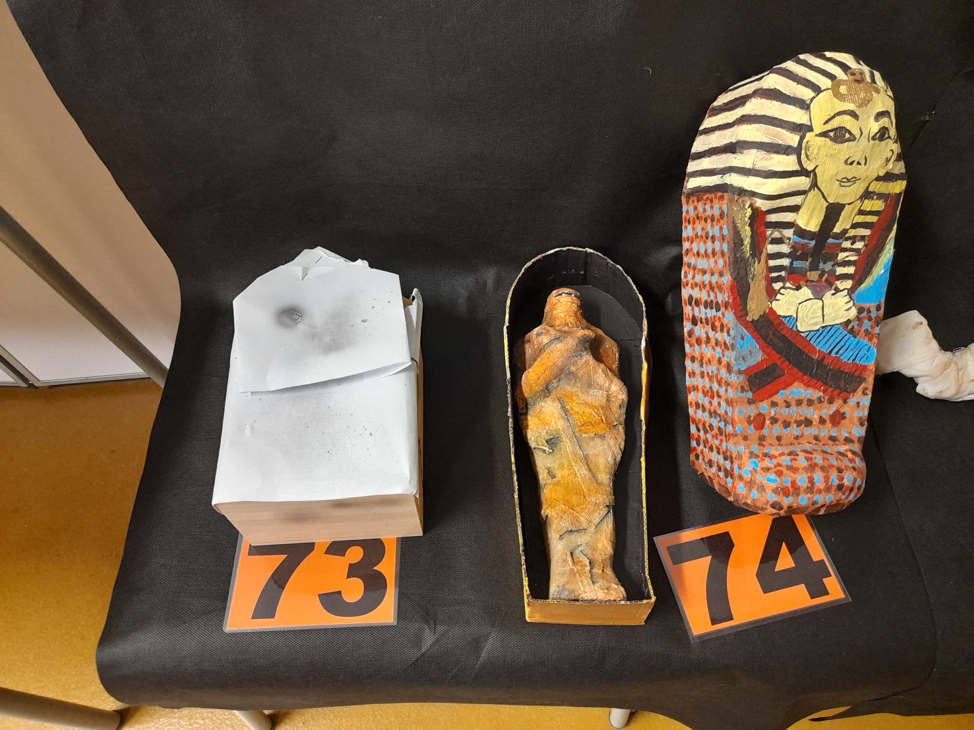 Els alumnes van participar activament en la creació de les obres exposades. Alguns van elaborar dibuixos detallats de mòmies, mentre que d’altres van construir maquetes de mòmies i sarcòfags utilitzant materials diversos.