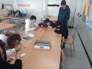 En aquesta jornada els alumnes de 2n d’ESO preparen activitats i tallers dirigits a l’alumnat de 1r d’ESO relacionats amb la cultura per la pau i els refugiats.