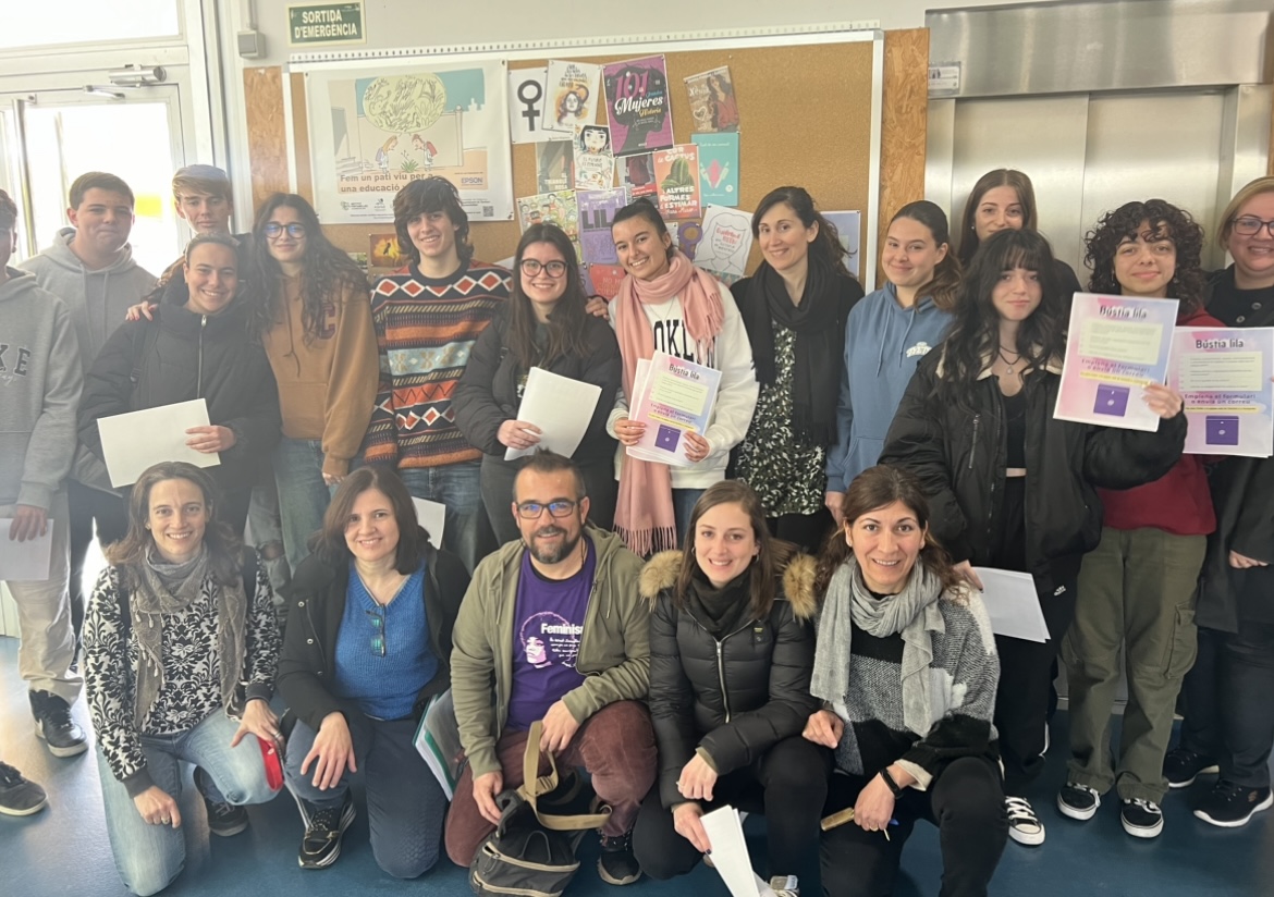 Ahir la Comissió de coeducació, creada durant aquest curs, va fer el seu segon acte representatiu. Avui és 8M i toca tornar a trencar la normalitat a les aules. Un grup d’alumnes i docents de la comissió van preparar un manifest per ser llegit a les aules. També s’ha posat en marxa un nou servei per a tota la comunitat, la bústia lila.