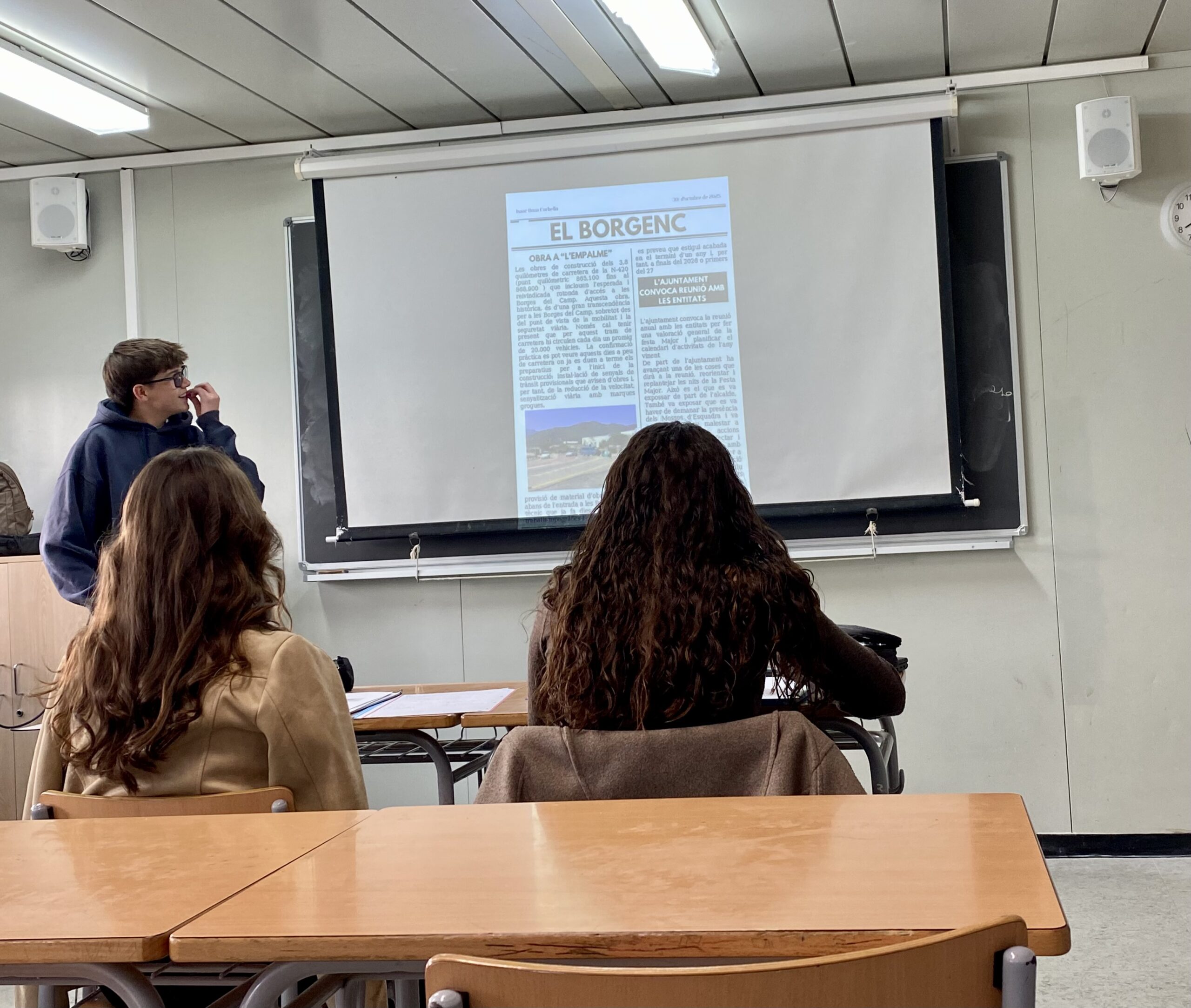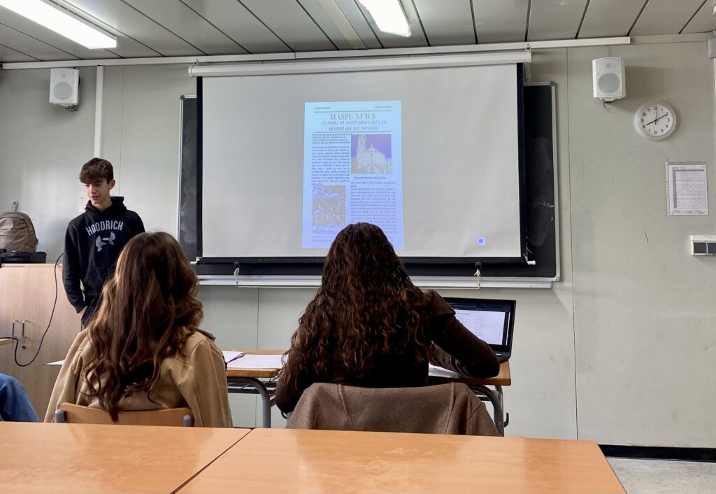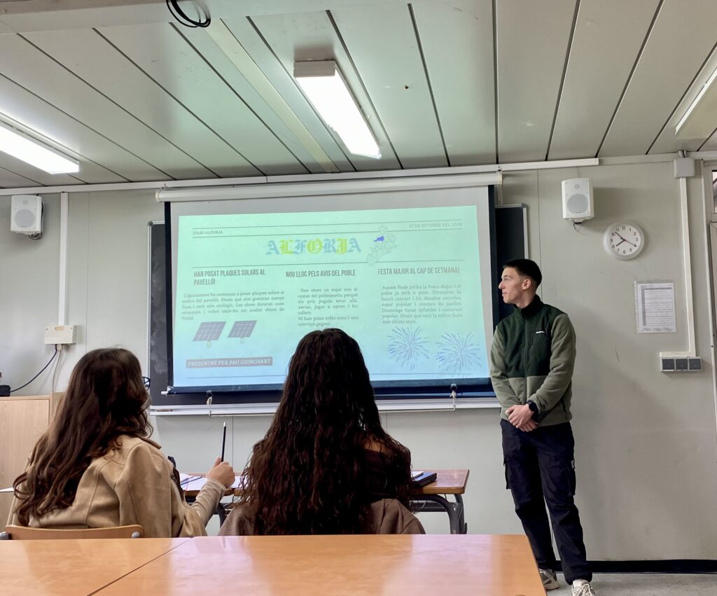 Aquestes últimes setmanes, els alumnes de 1r de Batxillerat de l’optativa de Comunicació Audiovisual, han estat endinsant-se en el món de la premsa escrita. S’han posat en la pell d’un periodista i han creat el diari del seu poble, on hi podem trobar les últimes notícies, entrevistes i curiositats, entre d’altres seccions.