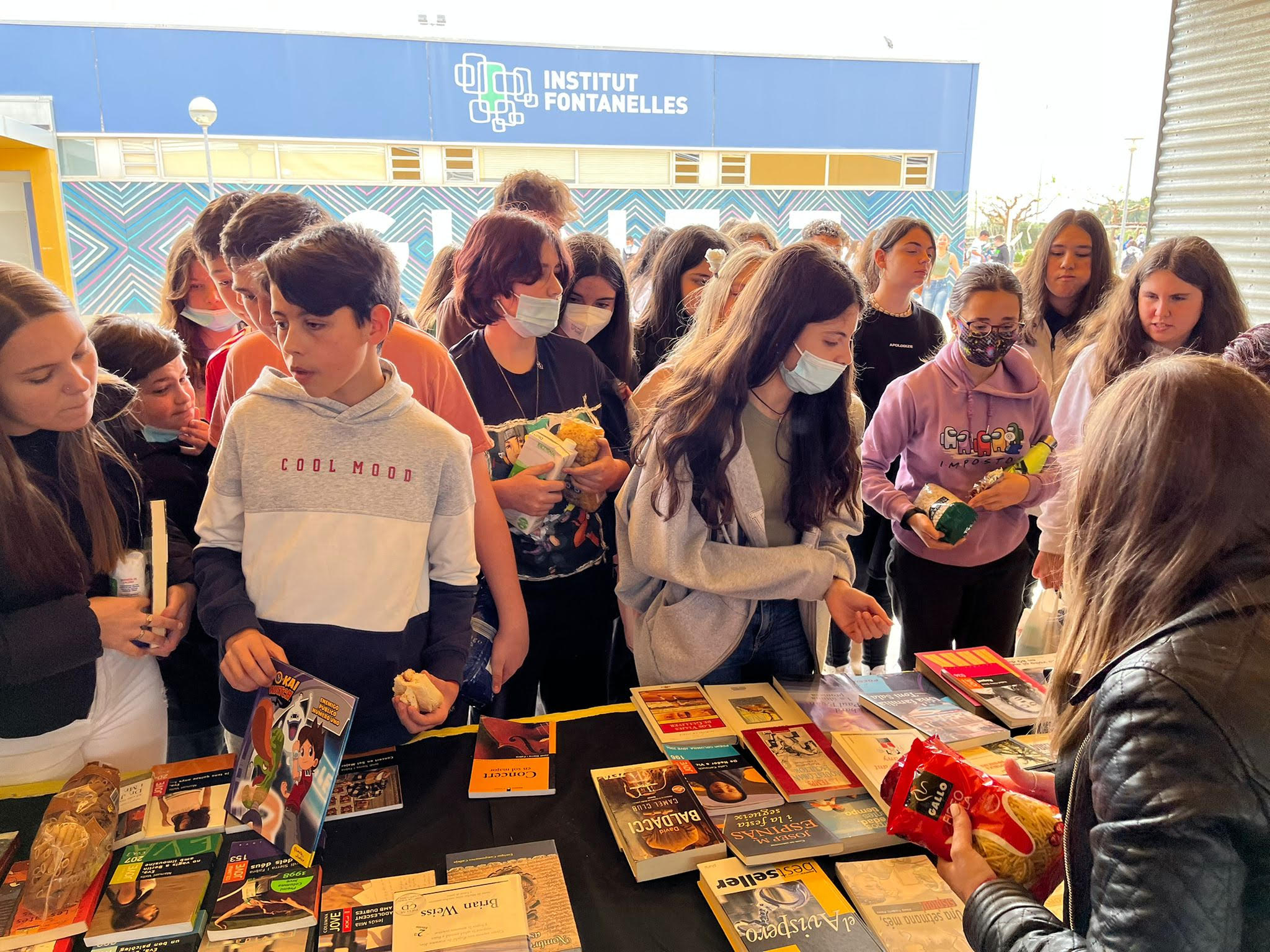 El divendres 22 d’abril es va celebrar la Jornada Cultural de Sant Jordi al centre. Una de les activitats consistia a concedir una segona vida a llibres que els docents van donar per l’ocasió. Es va muntar una parada de llibres de segona mà i els alumnes podien intercanviar aliments i articles de primera necessitat per llibres. La vostra generositat va fer exhaurir els llibres i gràcies a aquesta iniciativa vam poder entregar una donació ben generosa a Càritas.