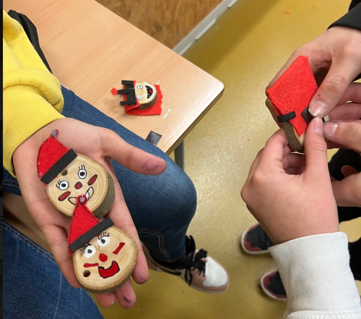 Al llarg del matí es van realitzar diferents activitats per cursos. La primera activitat va ser la visualització d’una pel·lícula, on cada curs veia la mateixa pel·lícula, però amb el seu grup classe. En finalitzar la pel·lícula els alumnes baixaven al pati on van poder gaudir de coca i xocolata per gentilesa de l’AMPA. En finalitzar el pati… tots a les aules de nou! Els alumnes de primer d’ESO van fer un marc de fotos per poder-hi posar la foto del seu grup classe. Els alumnes de segon d’ESO van fer un imant d’un tió per penjar a casa seva. Els alumnes de tercer d’ESO van fer una postal digital per felicitar les festes de Nadal. Els alumnes de 4t d’ESO van jugar al Fontapoli.