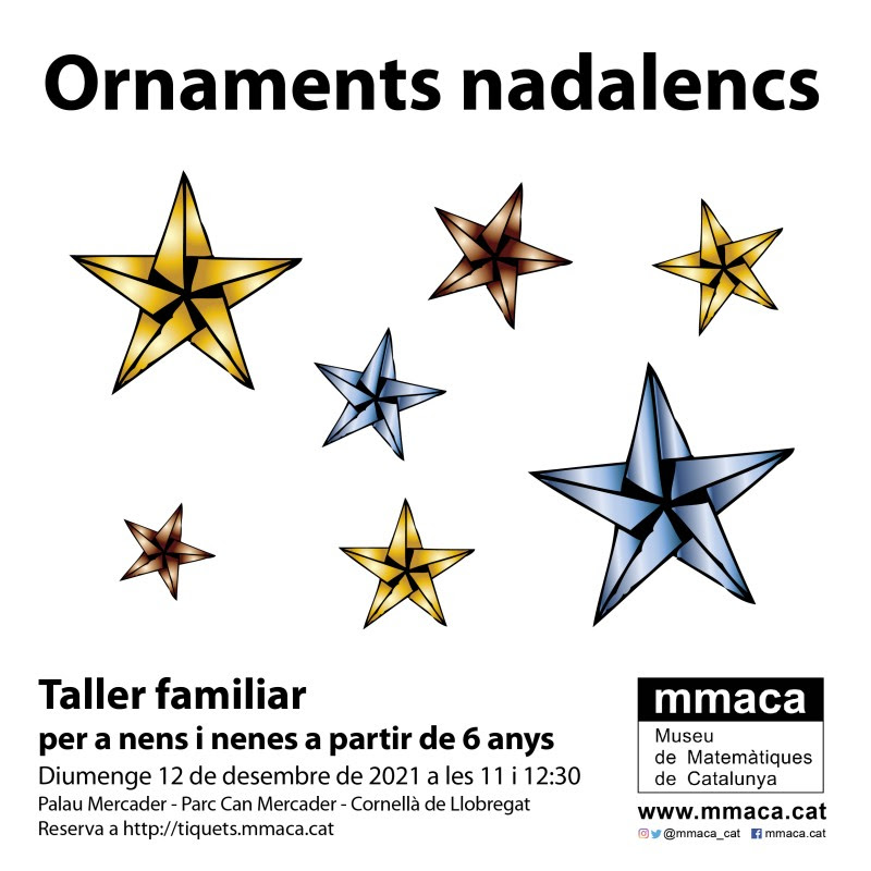 A les 11 i les 12:30 (en 2 torns), una nova edició del taller familiar d’ornaments geomètrics, on podreu aprendre a realitzar diferents tipus d’estrelles amb tècniques de papiroflèxia.