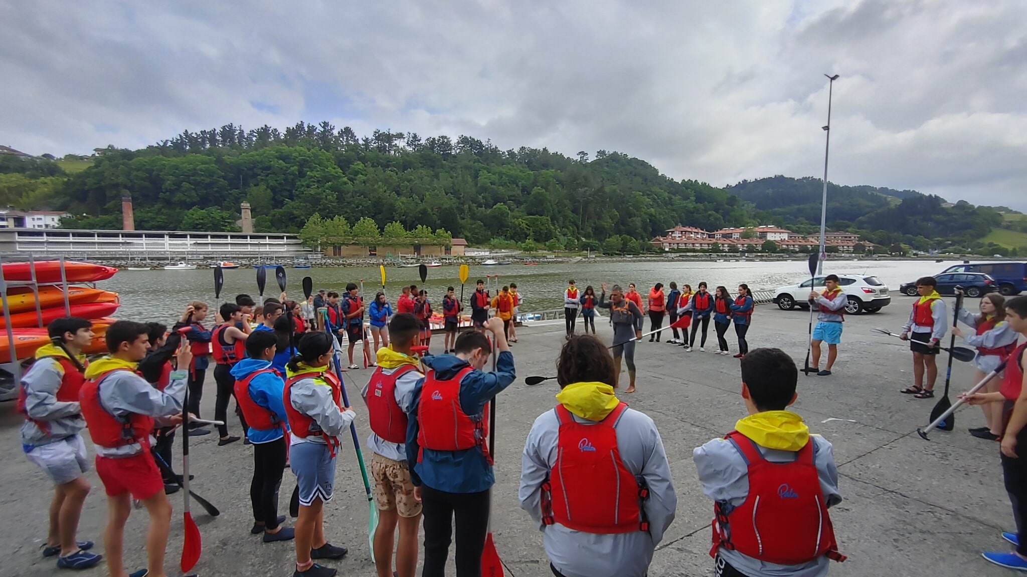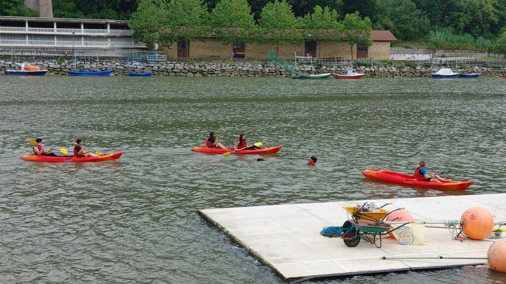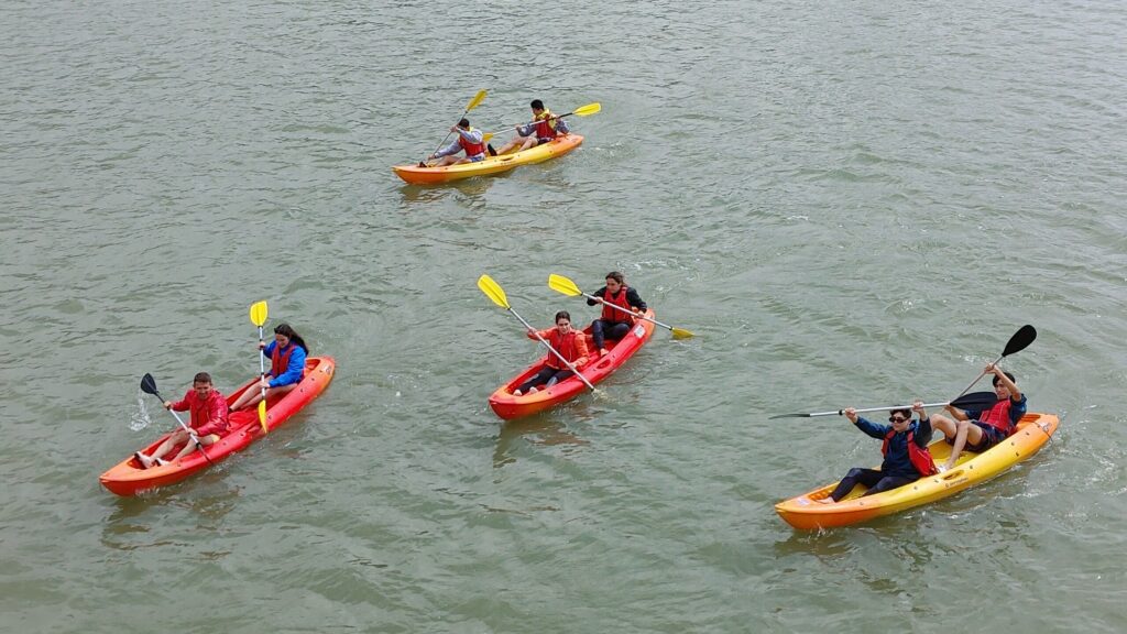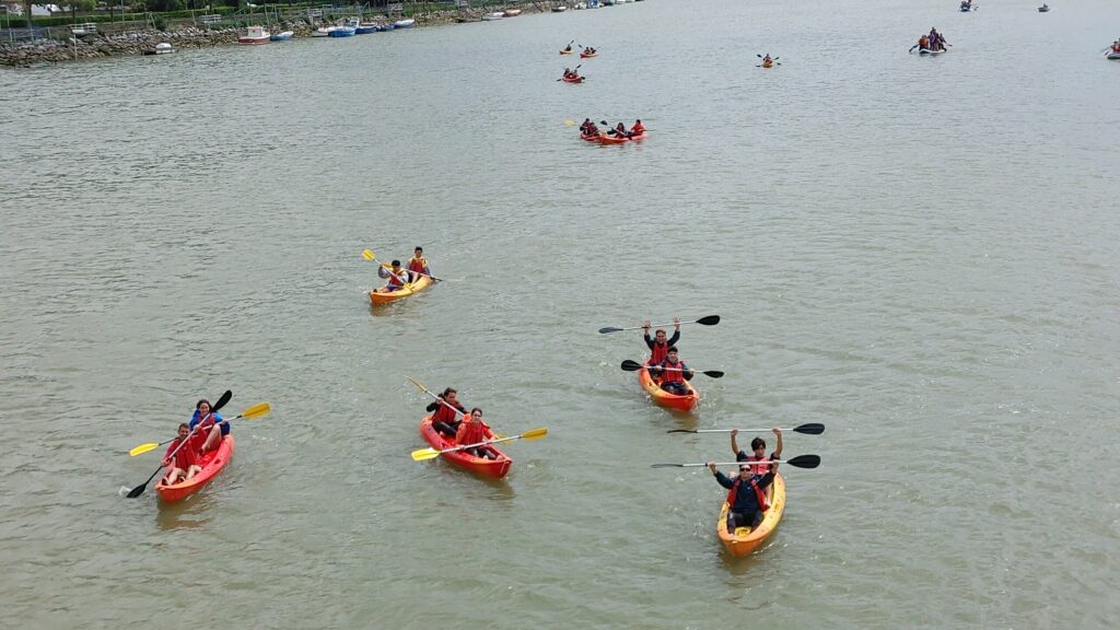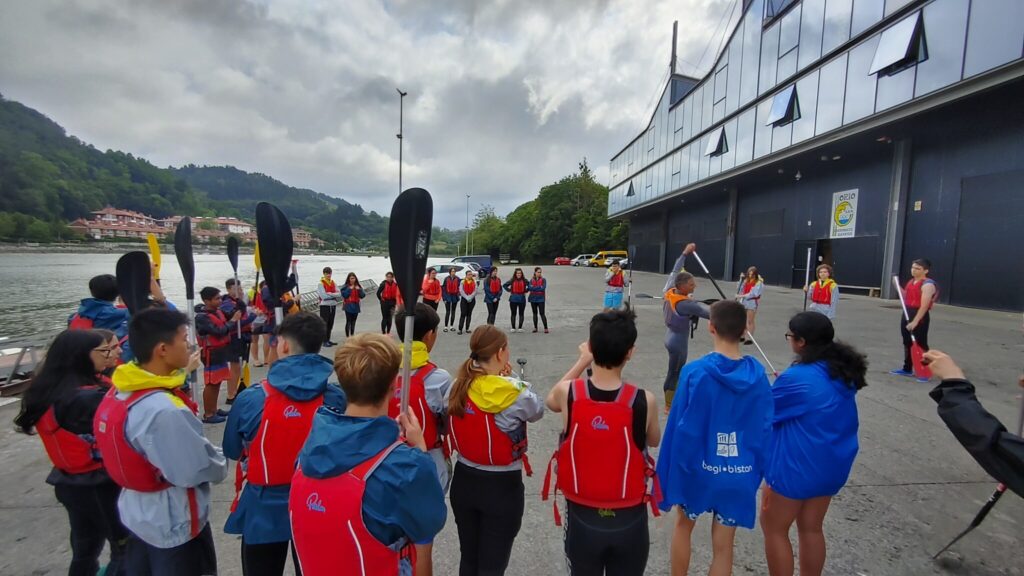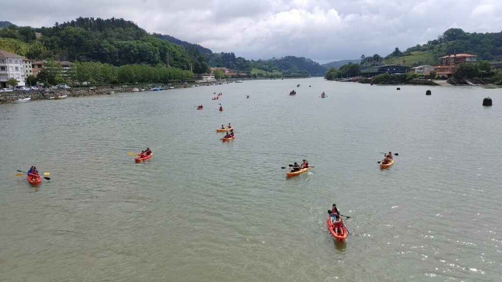 Avui, els alumnes de 4t que participem en el viatge de fi de curs hem anat a fer caiac i big sup a la localitat d’Orio. Al migdia hem fet un pícnic a la bonica ciutat de Zumaia, i per completar la jornada ens han fet una visita guiada per conèixer els flysch, una peculiar formació rocosa emmarcada en uns paisatges costaners espectaculars. Demà visitarem Bilbao i el seu Guggenheim, i alguna sorpresa més ens espera.