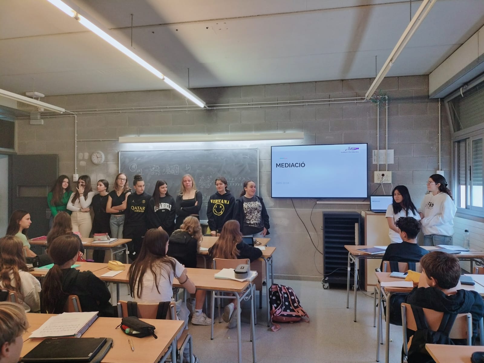 Avui hem començat a passar per les classes per presentar el súper equip de mediació d’aquest curs.