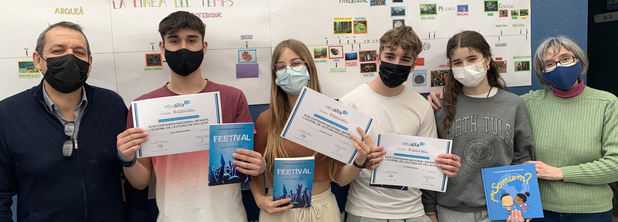 L’Hugo Corbalan, l’Aina Bosch, l’Èric MArtín i l’Edurne Roy han rebut el diploma acreditatiu i un llibre d’obsequi per la seva participació en la semifinal del Certamen de Lectura en Veu Alta, atorgats per l’organització del Certamen.