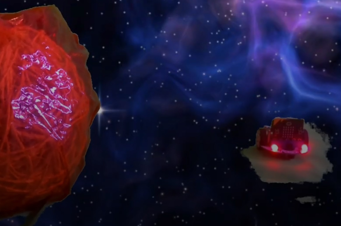 El nostre robot estava perdut a un planeta misteriós de la galàxia X-32 i havia de trobar la vostra nau. Per sort, el robot era capaç de seguir un rastre lluminós i l’alumnat el va programat per guiar-lo fins a la nostra nau.