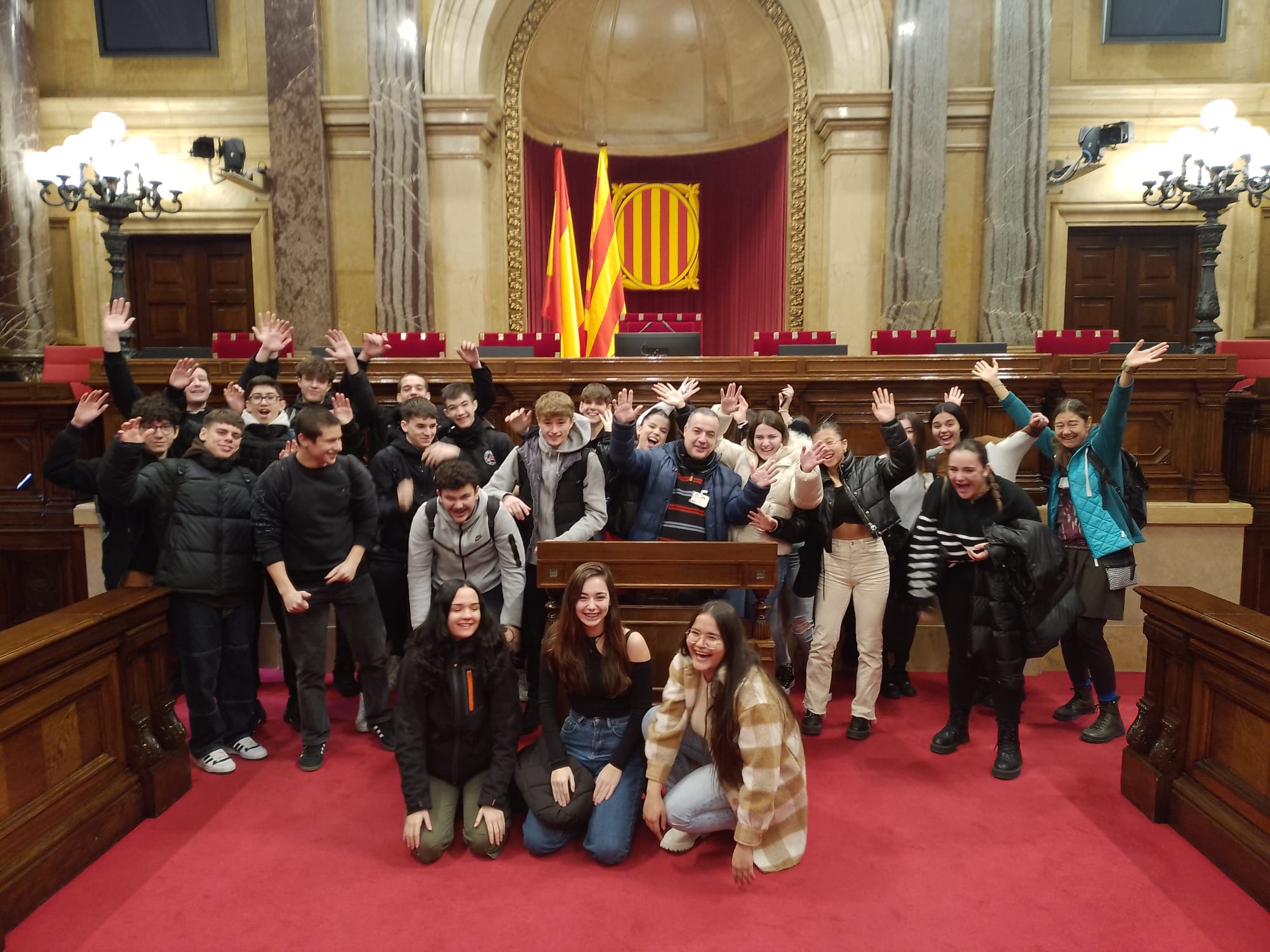 El passat divendres, 3 de febrer, l’alumnat de 1r de Batxillerat que cursa l’assignatura de “Ciutadania, Política i Dret” va fer una sortida per visitar el Parlament de Catalunya. A la sortida ens van explicar com funcionen els plens del Parlament i quina és la importància que té aquesta institució a Catalunya. Ens van explicar la història de l’edifici i moltes curiositats més i també ens van deixar estar al faristol -lloc només accessible pels nostres polítics-. Els alumnes van gaudir molt i van aprendre molt sobre política.
