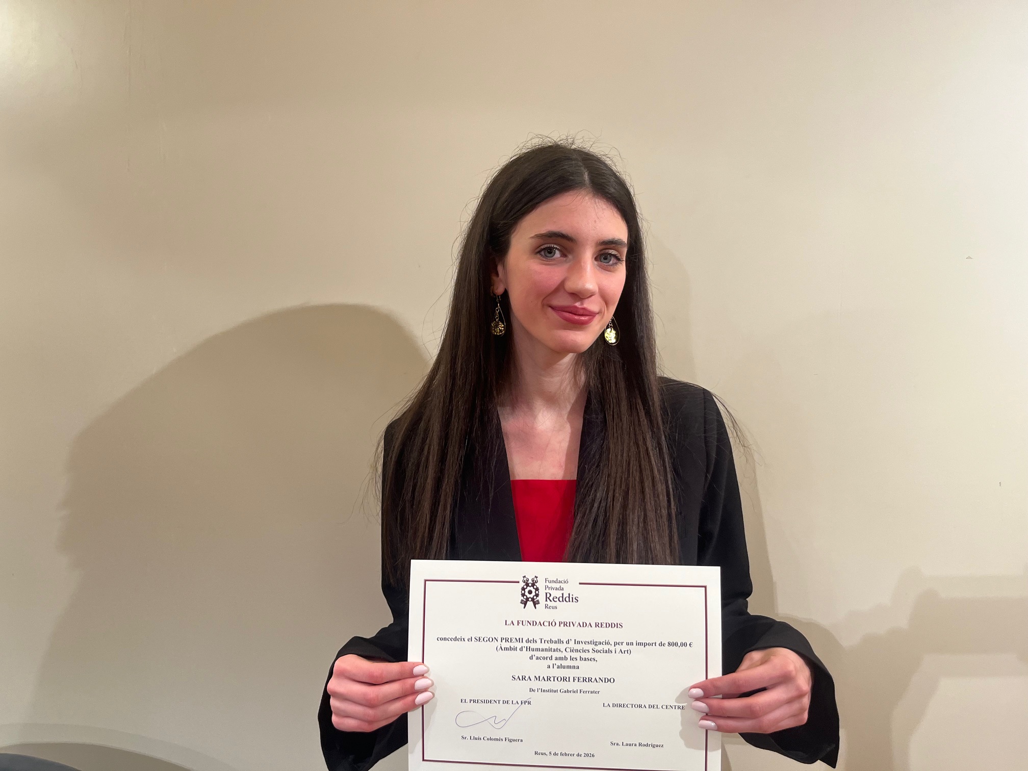 L’alumna Sara Martori, que va cursar 2n de batxillerat artístic plàstic durant el curs 2024/25, ha obtingut el 2n premi de la Fundació Privada Reddis de batxillerat en la modalitat d’Humanitats, Ciències Socials i Art .