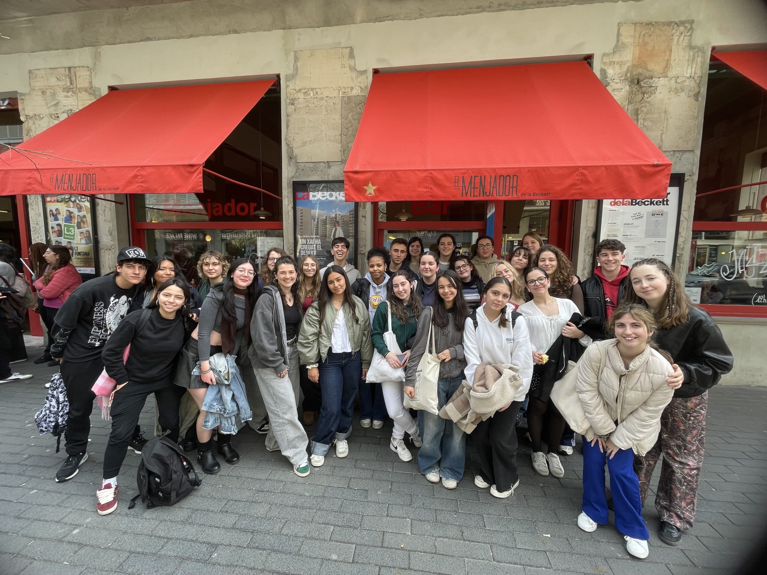 I el 3 d’abril, sí, va ser una setmana intensa!, vam viatjar amb 1er i 2on de BATX a la Sala de Beckett de Barcelona per assistir a la final d’escriptura dramàtica on es jugava entre 9 centres quina era la millor escena dramàtica escrita durant les sessions que va durar el projecte (del gener a l’abril). En aquest cas els nostres dramaturgs eren les noies i nois de 2on de BATX. Val a dir que vam estar a punt de portar-nos el premi però haurem d’esperar al proper any a veure si ho aconseguim!
