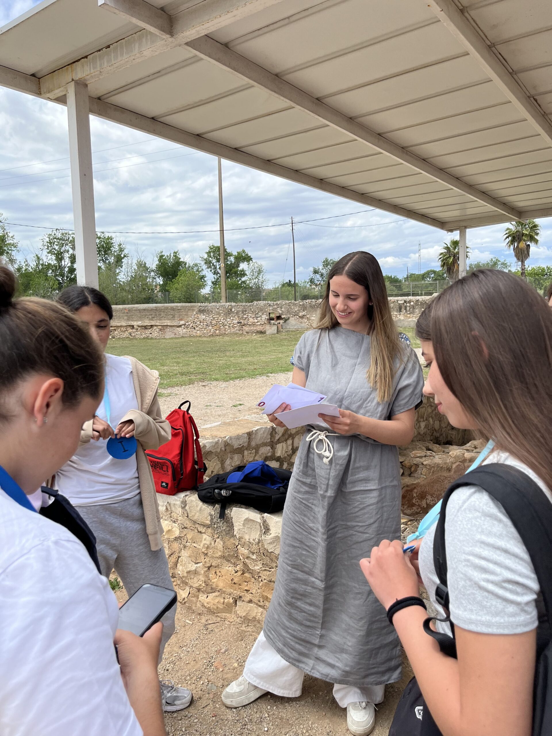Per últim, el 15 de Maig l’alumnat de Llengua i Cultura Gregues I van participar en els IV Ludi Constantinenses, activitat emmarcada dins del Festival Tarraco Viva. Aquestes jornades, organitzades per l’ICE de Clàssiques de la URV, l’alumnat de Llatí de 4t d’ESO de diferents centres van poder participar en diversos tallers organitzats al conjunt monumental de Centcelles (Constantí). El nostre alumnat va participar-hi com a monitors de l’activitat Ludus Hadriani, un joc de pistes on els discipuli havien d’intentar resoldre el misteri de l’intent d’assassinat de l’emperador Adrià a Tarraco.