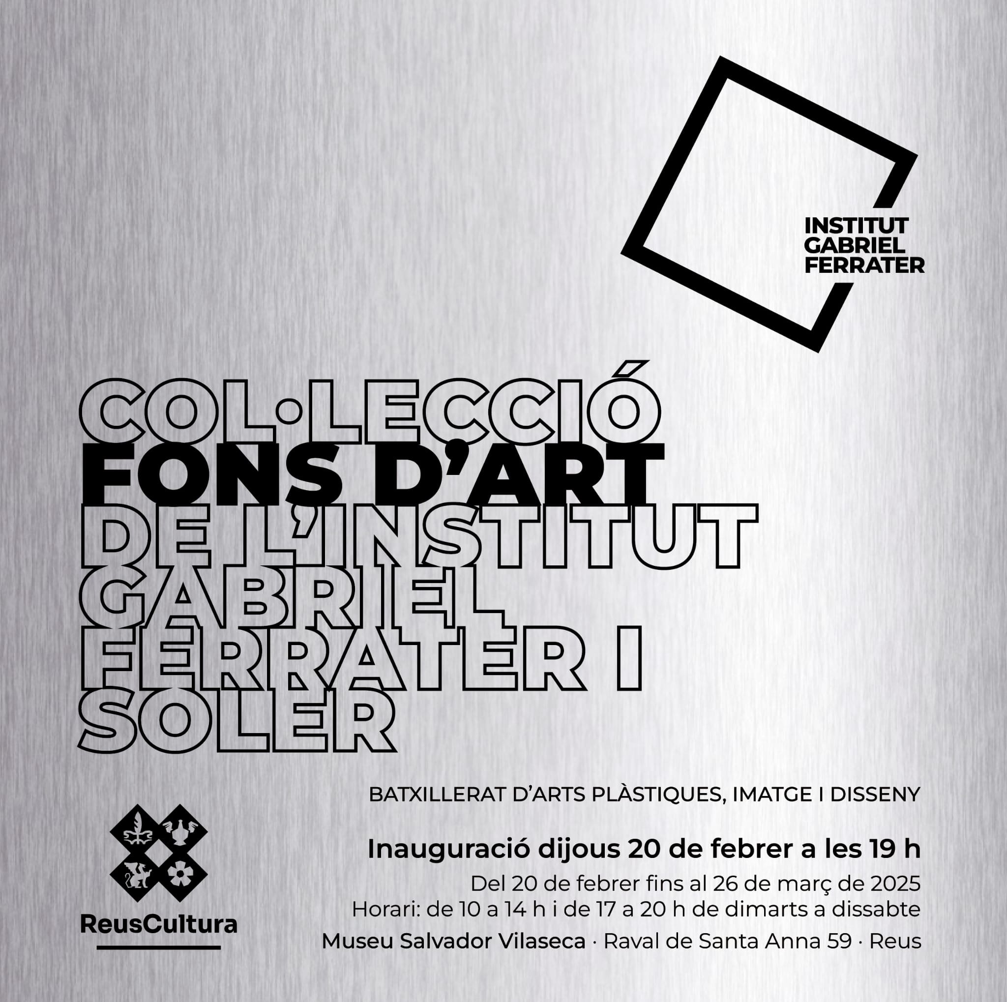 El passat dijous 20 de febrer es va inaugurar la Col·lecció Fons d’Art de l’Institut Gabriel Ferrater i Soler al Museu Salvador Vilaseca de la ciutat. Aquesta exposició mostra un recull d’obres realitzades per alumnes del Batxillerat Artístic del centre des de l’any 2006 fins el curs passat.