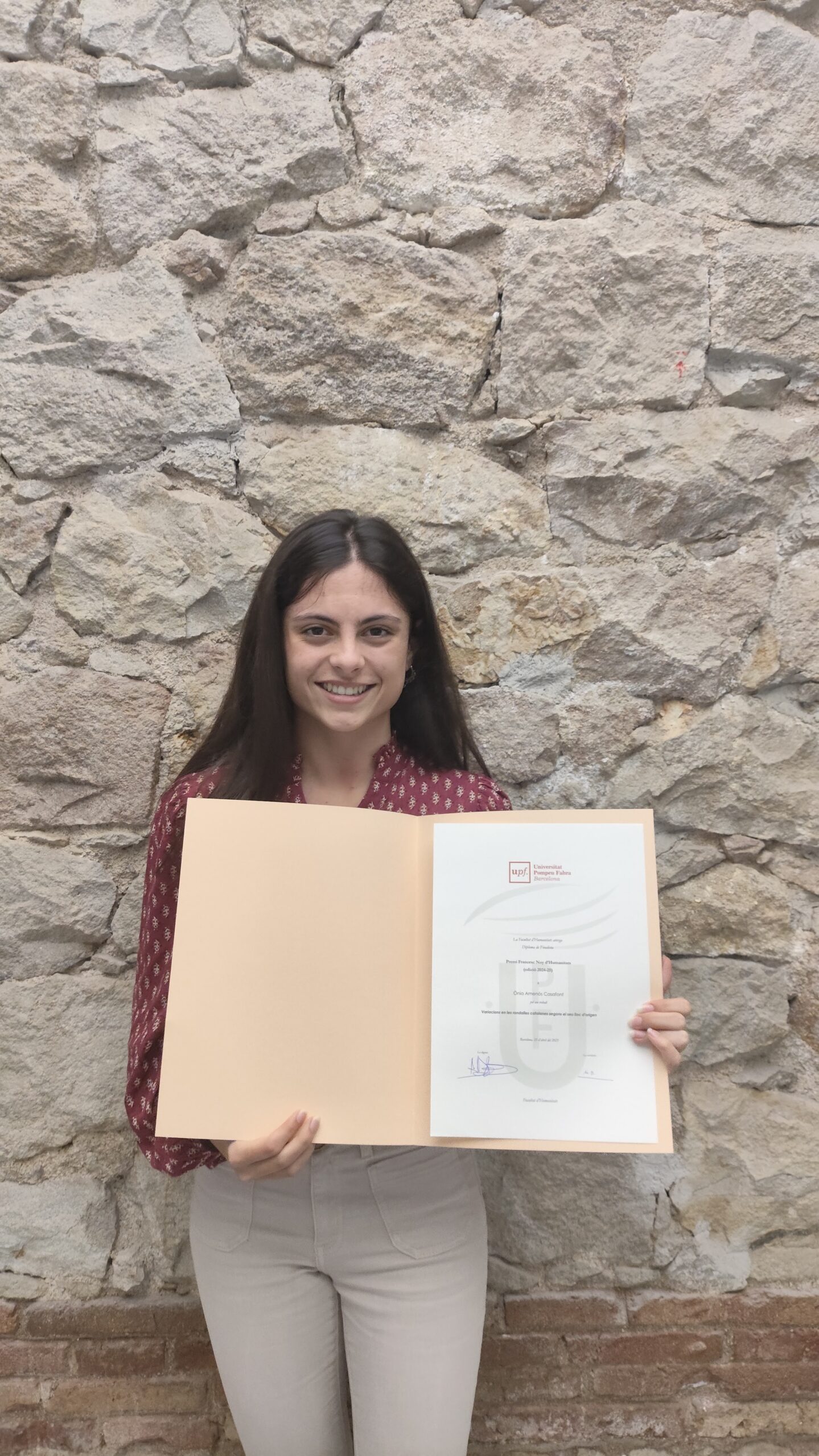 Al lliurament de premis dels Premis Francesc Noy d’Humanitats de la UPF, l’alumna l’Ònia Amenós, de 2n G, va quedar una de les deu finalistes de entre els 96 treballs presentats. El seu treball tracta sobre l’ús d’algunes expressions del català a les diferents comunitats de parla catalana, a través d’ un exhaustiu treball amb arxius; i ha estat tutoritzat per l’Edgar Batet.