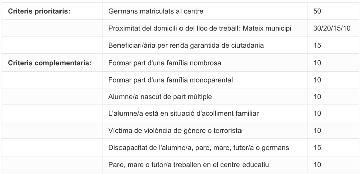 Consorci us envia avui un email amb les dades de la puntuació de la preinscripció del vostre fill/a.