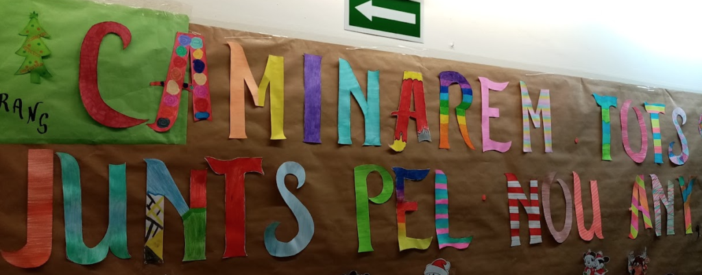 Aquest és el bonic desig expressat en el gran cartell que, en el passadís de 1r d’ESO, han penjat els alumnes de primer amb l’ajuda dels amics grans i que volem compartir amb tots vosaltres.