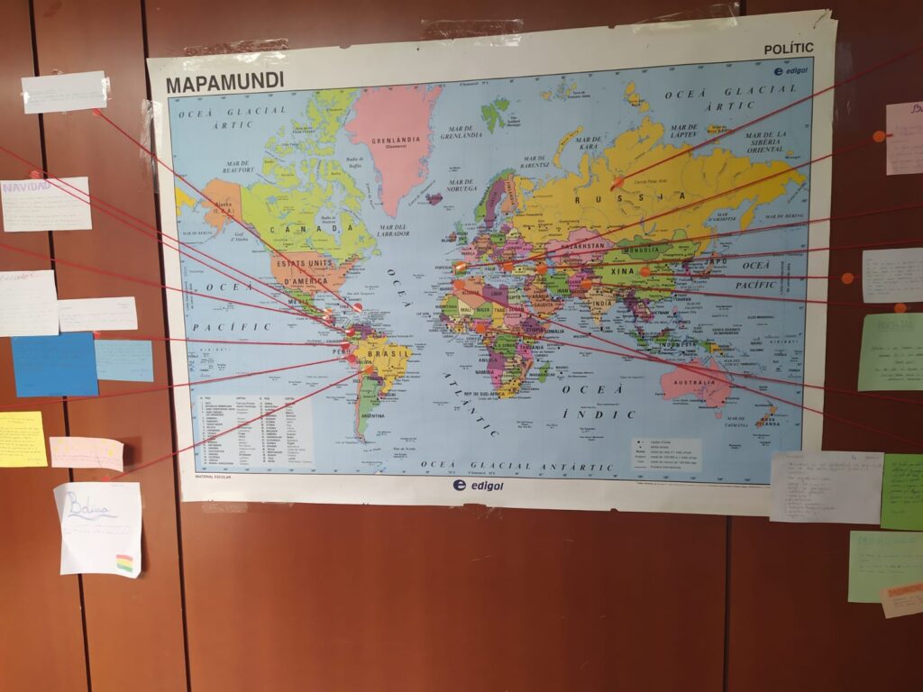 Doncs amb aquest mural, a través dels textos i les redaccions que l’acompanyen, hem aprés com viuen Nadal diferents cultures i tradicions del món. Una passada! Un mapamundi molt interessant i enriquidor que podeu contemplar i gaudir al segon i tercer pis de l’institut.