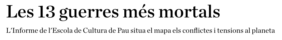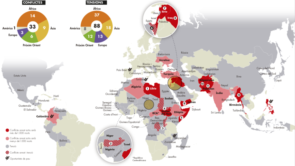 En l’última dècada, la guerra s’ha fet més cruenta i més letal. Dels 32 conflictes armats que hi ha actius al planeta, 13 són d’alta intensitat, és a dir, provoquen més de mil víctimes mortals a l’any. També l’impacte sobre la població civil, els desplaçaments forçats i la violència sexual empitjoren. Són conclusions de l’informe ‘Alerta 2018!’ de l’Escola de Cultura de Pau de la Universitat Autònoma, que fa referència al 2017.
