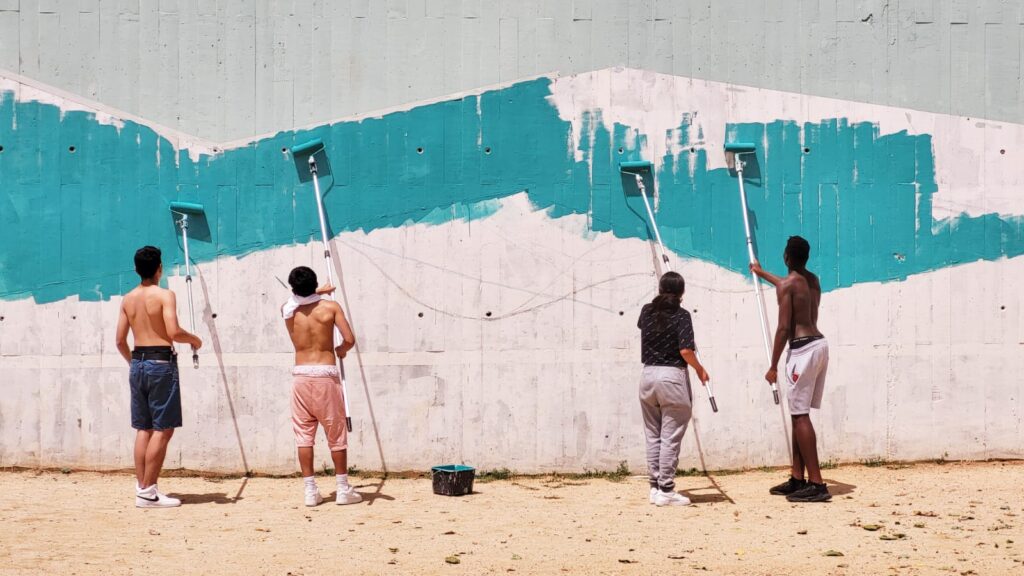 Un dels projectes que duu a terme l’alumnat de l’aula oberta, ajudat de vegades per altres grups, és la recuperació del mal estat en què es trobava el mur del nostre pati. Després d’escollir el diseny que s’hi pintaria, s’ha seguit un procés que ha anat passant per diverses fases, com podreu veure a les fotos. Actualment ja estan omplint de color cadascuna de les parts del mural que esperem estigui enllestit ben aviat. Molts ànims i felicitats pel projecte!